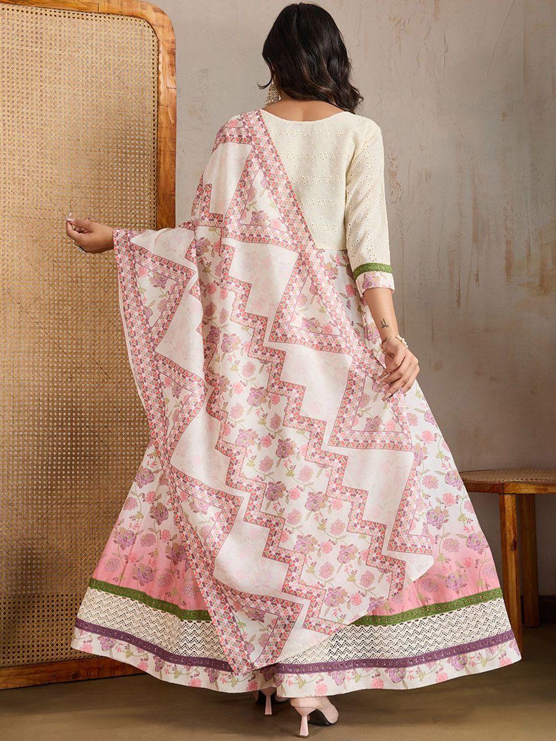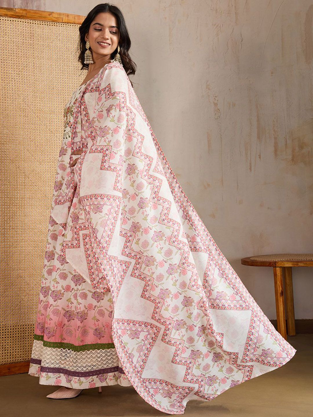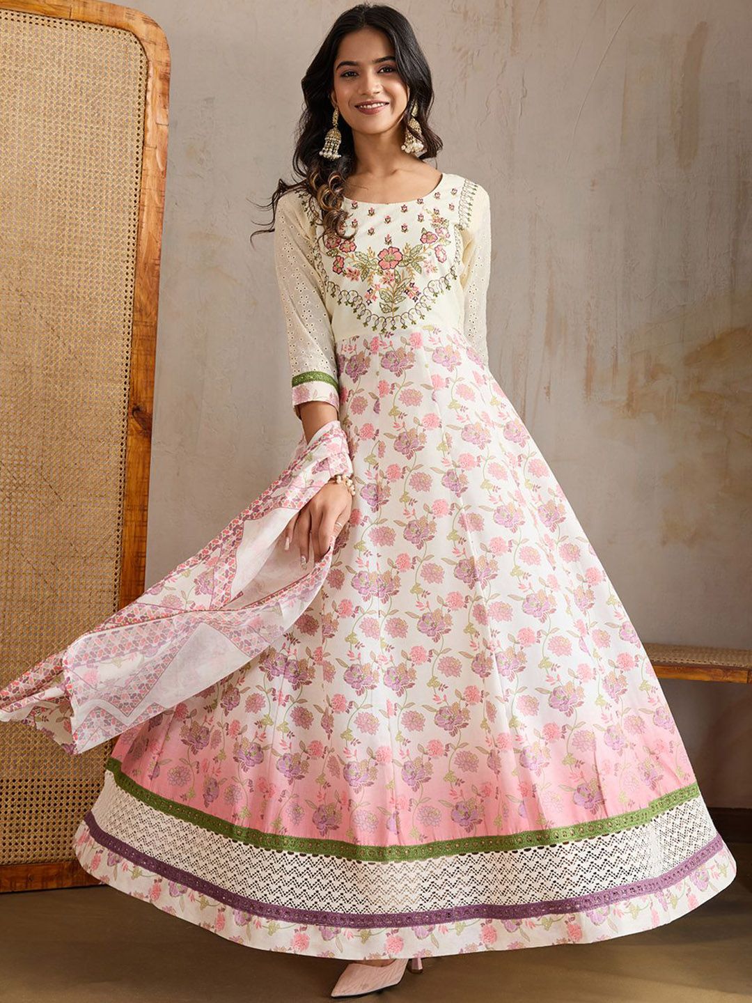 Inddus Women Floral Print Regular Thread Work Anarkali Kurta with Trousers & Dupatta