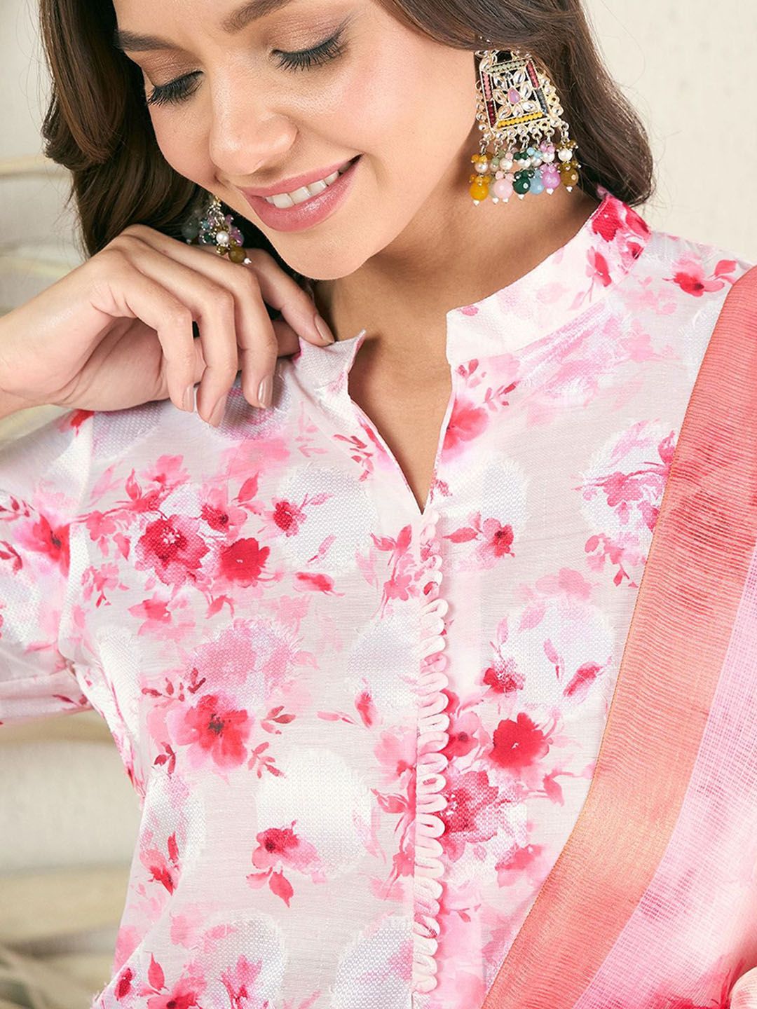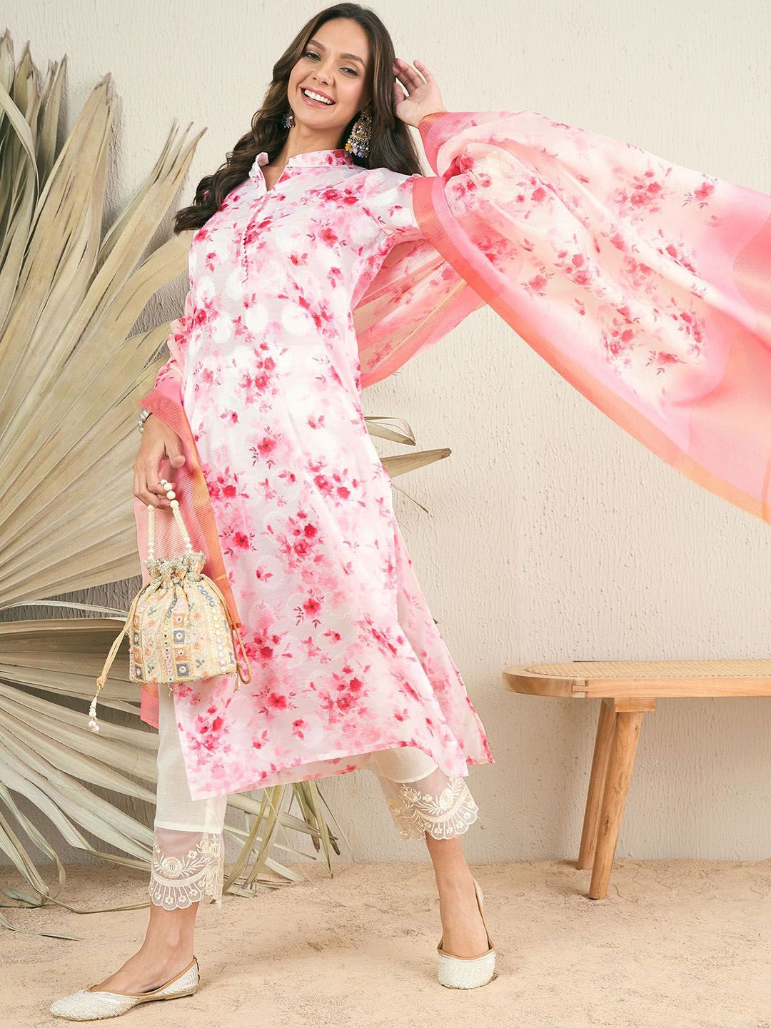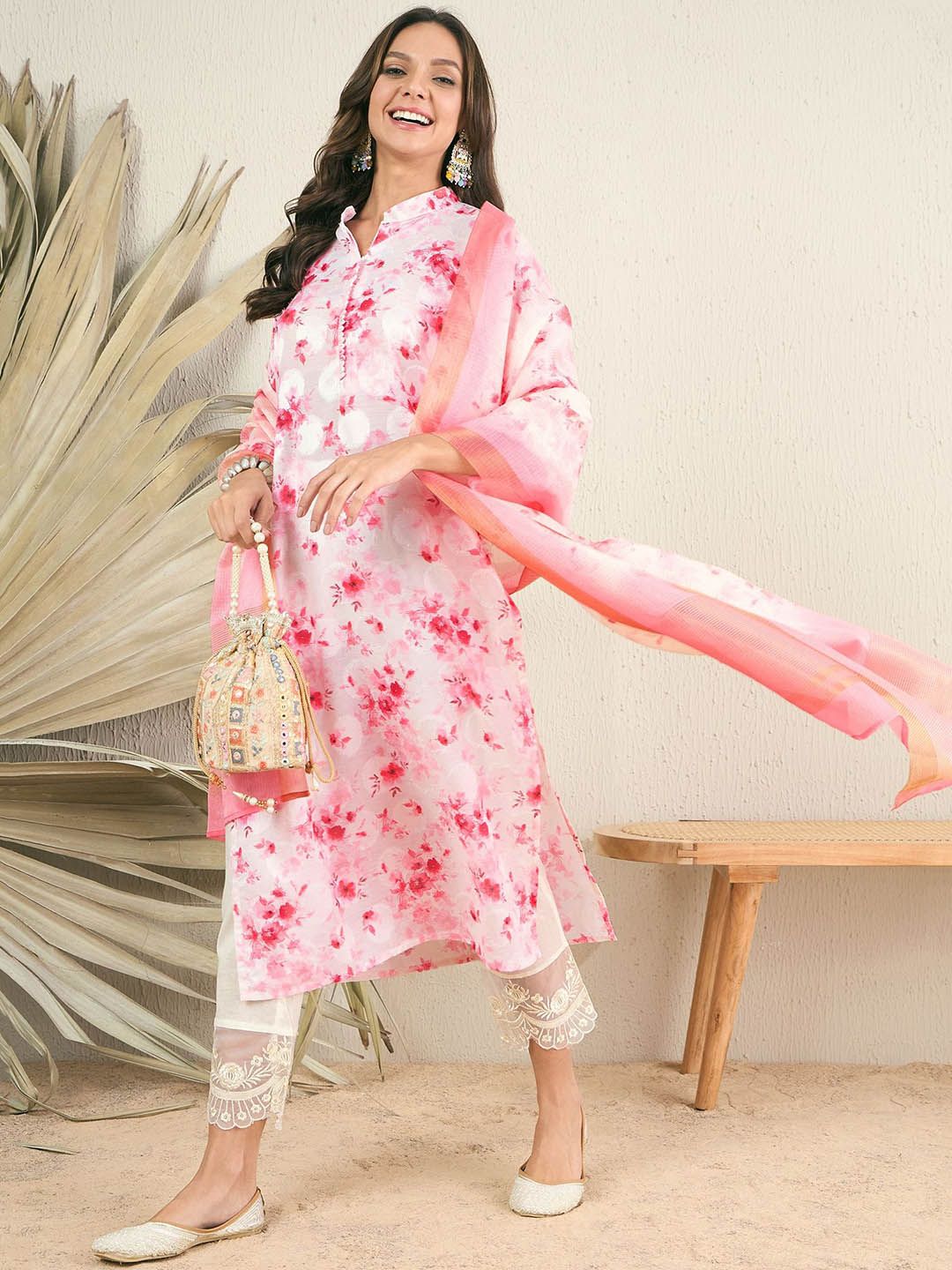 Inddus Women Floral Printed Kurta with Trouser & Dupatta