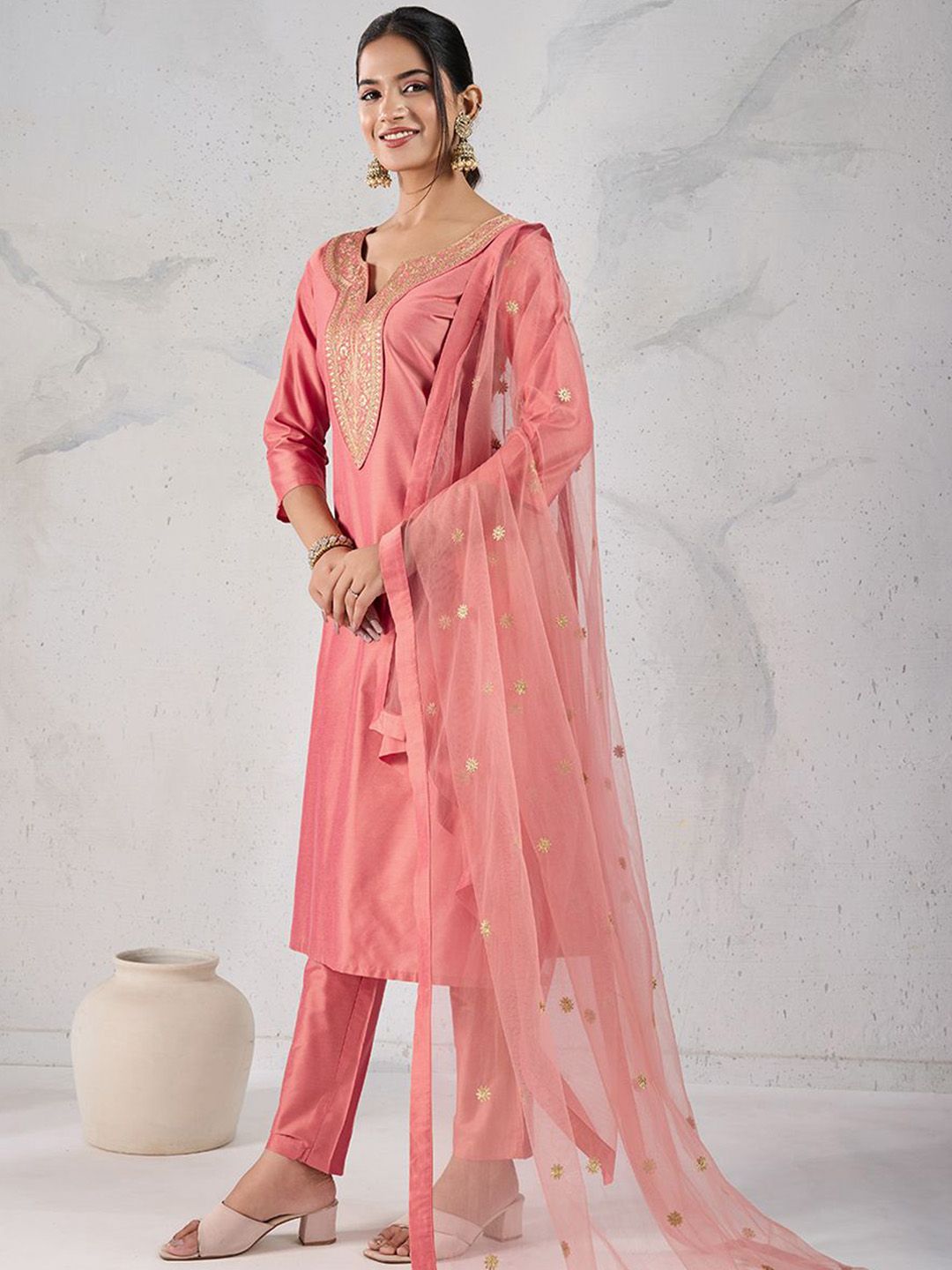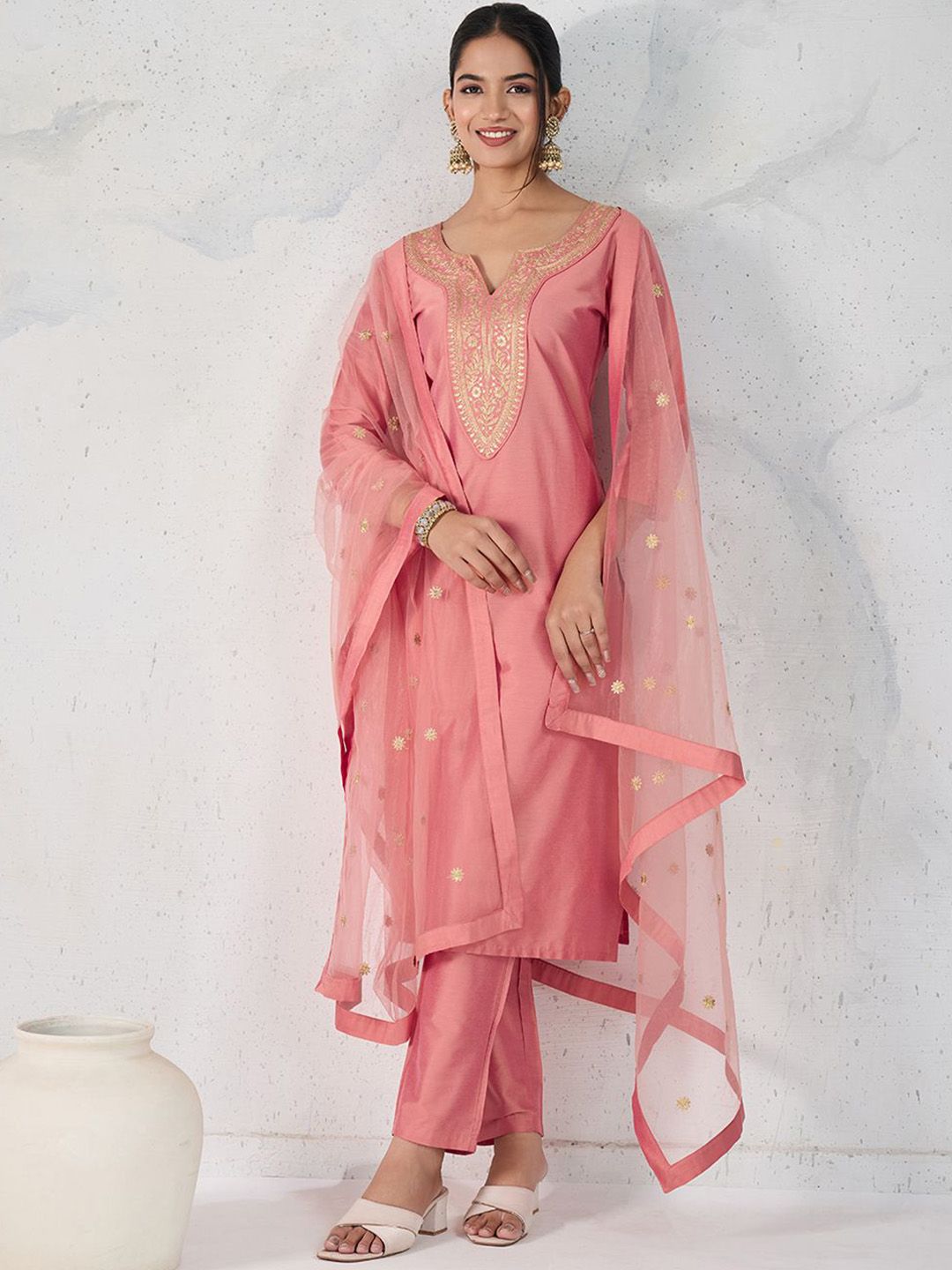 Inddus Women Floral Printed Kurta with Trousers & Dupatta