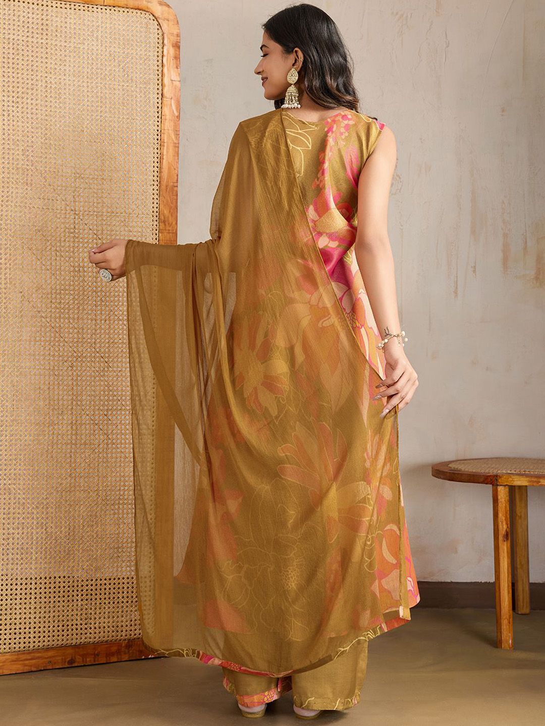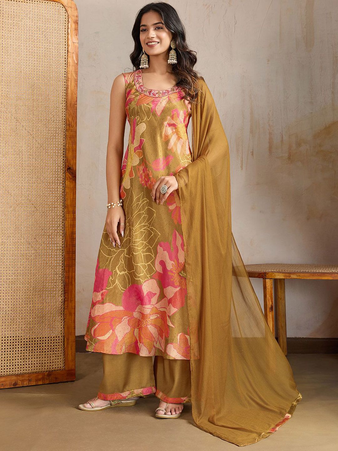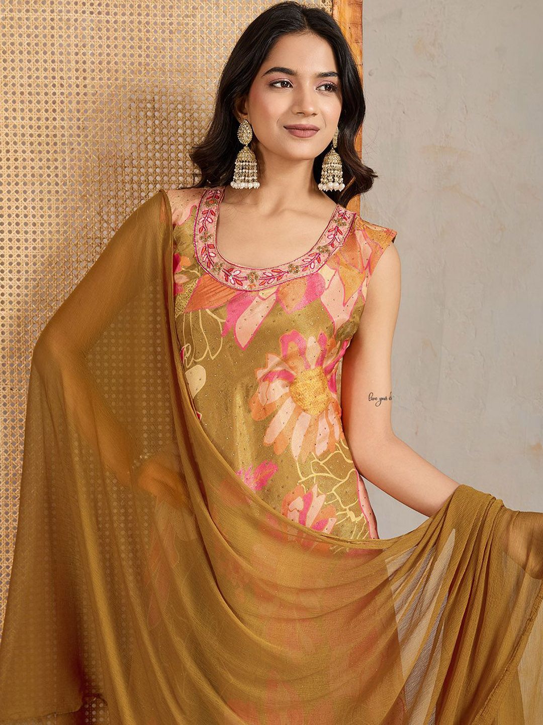 Inddus Women Floral Printed Regular Beads and Stones Kurta with Palazzos & Dupatta