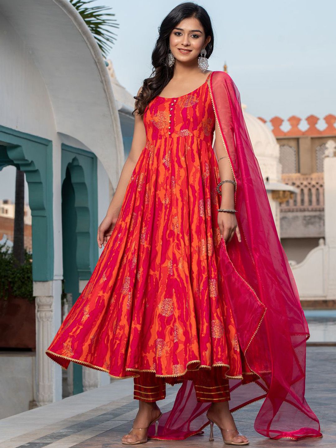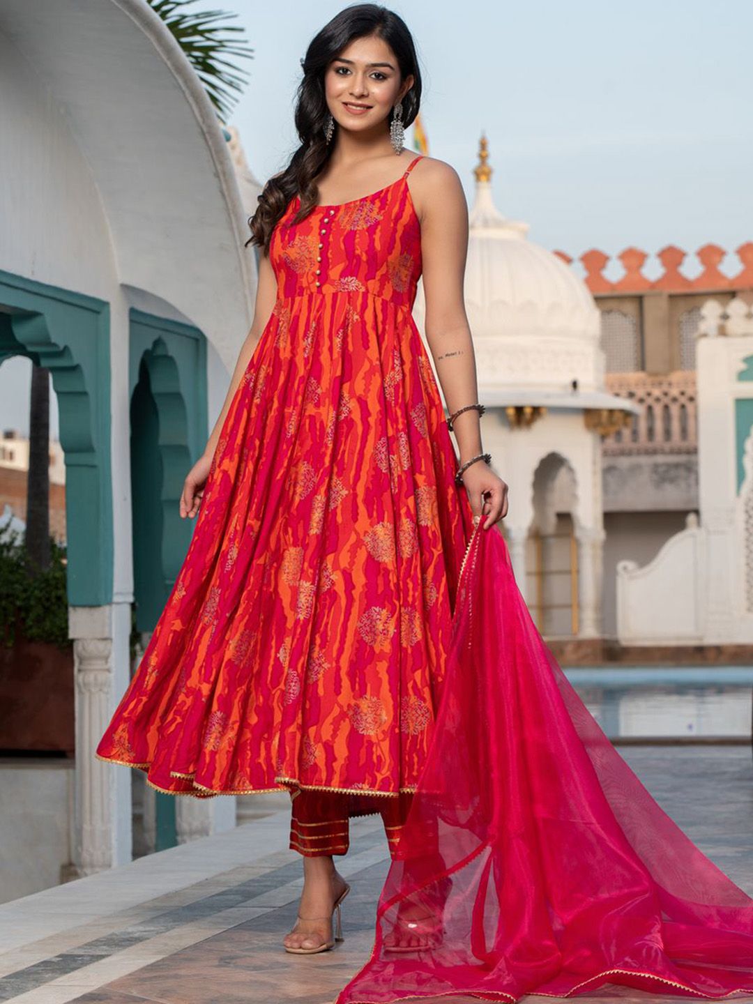 Indi INSIDE Women Ethnic Motifs Printed Gotta Patti Kurta with Trousers &Dupatta