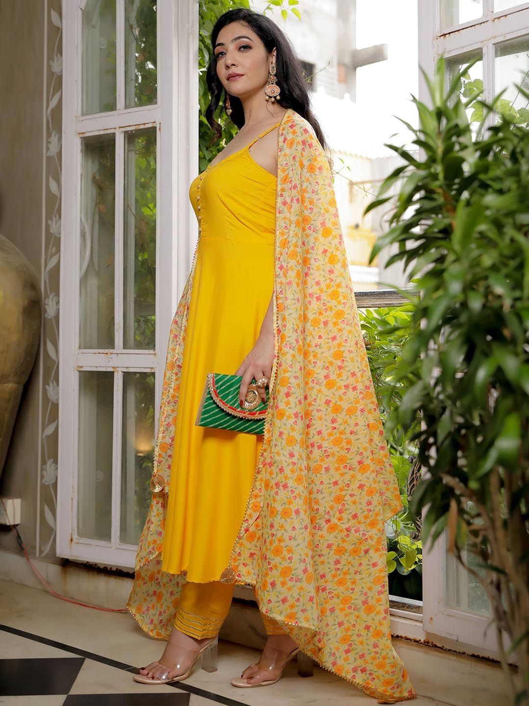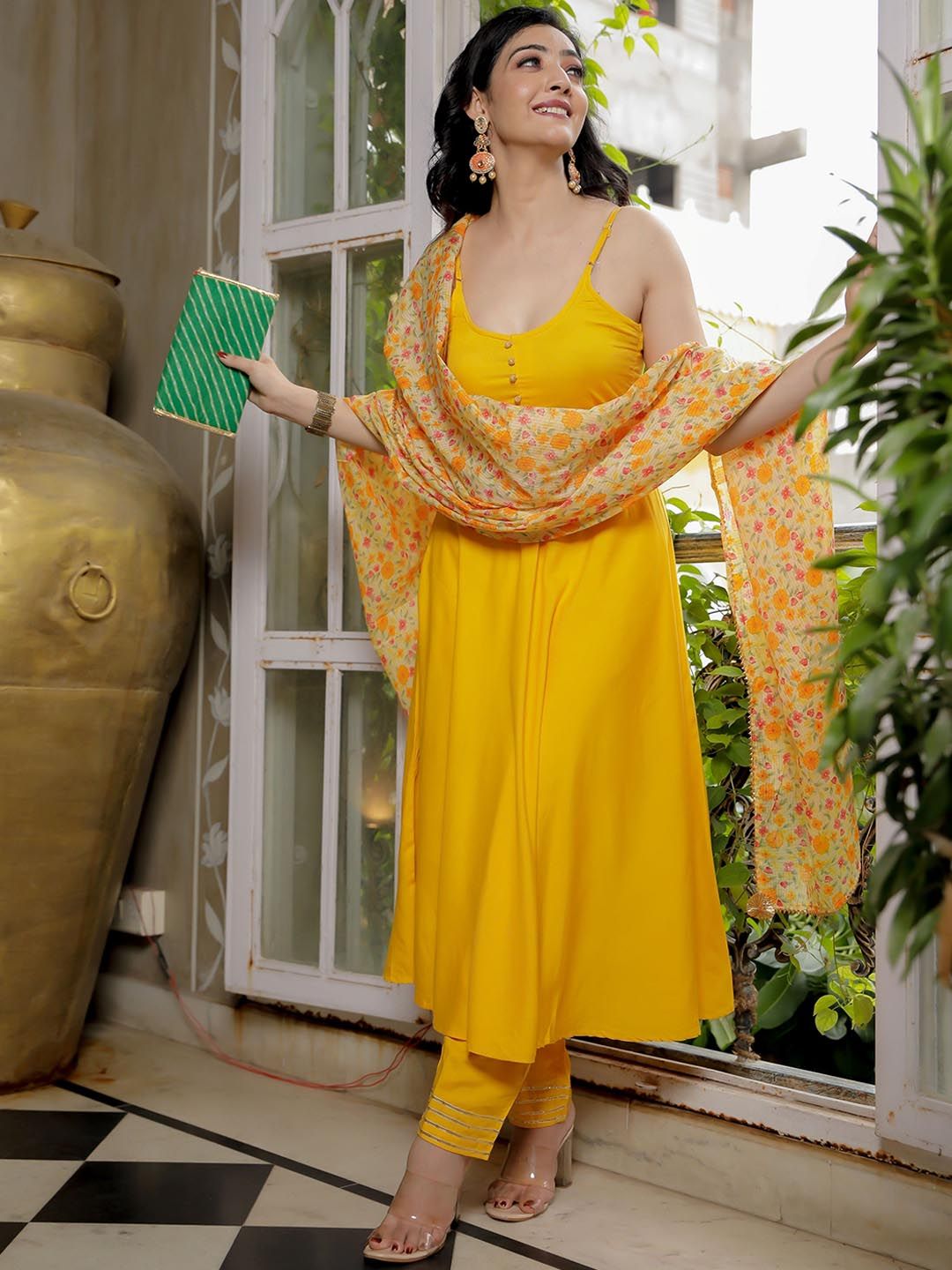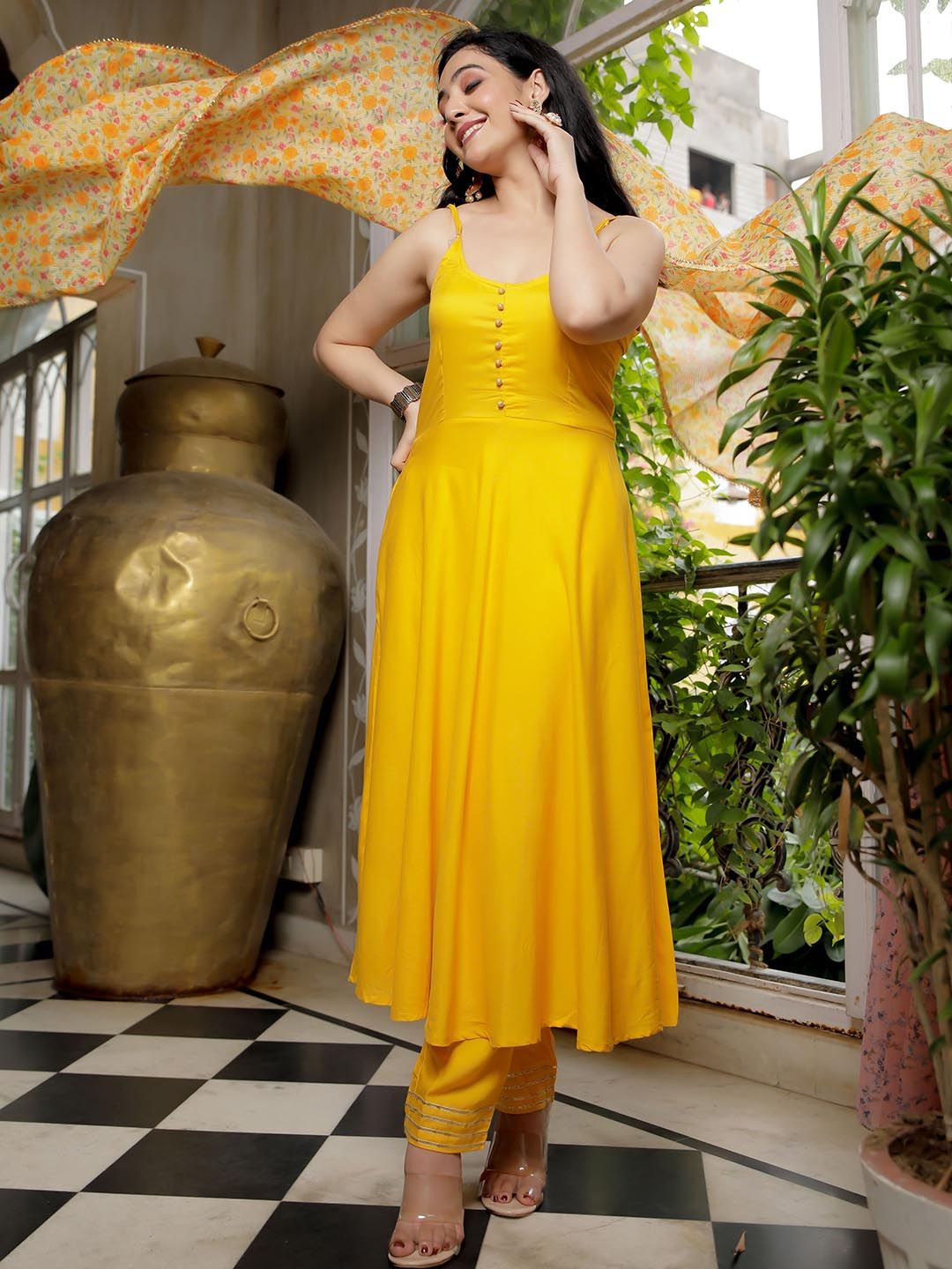 Indi INSIDE Women Solid Kurta with Trousers & Dupatta