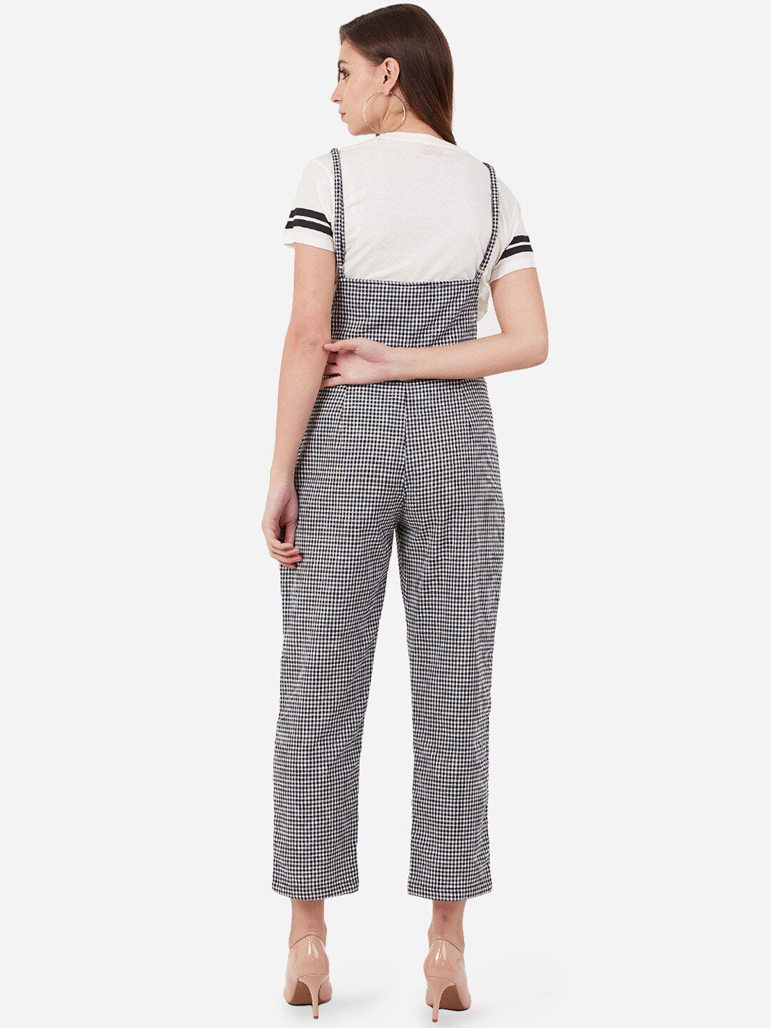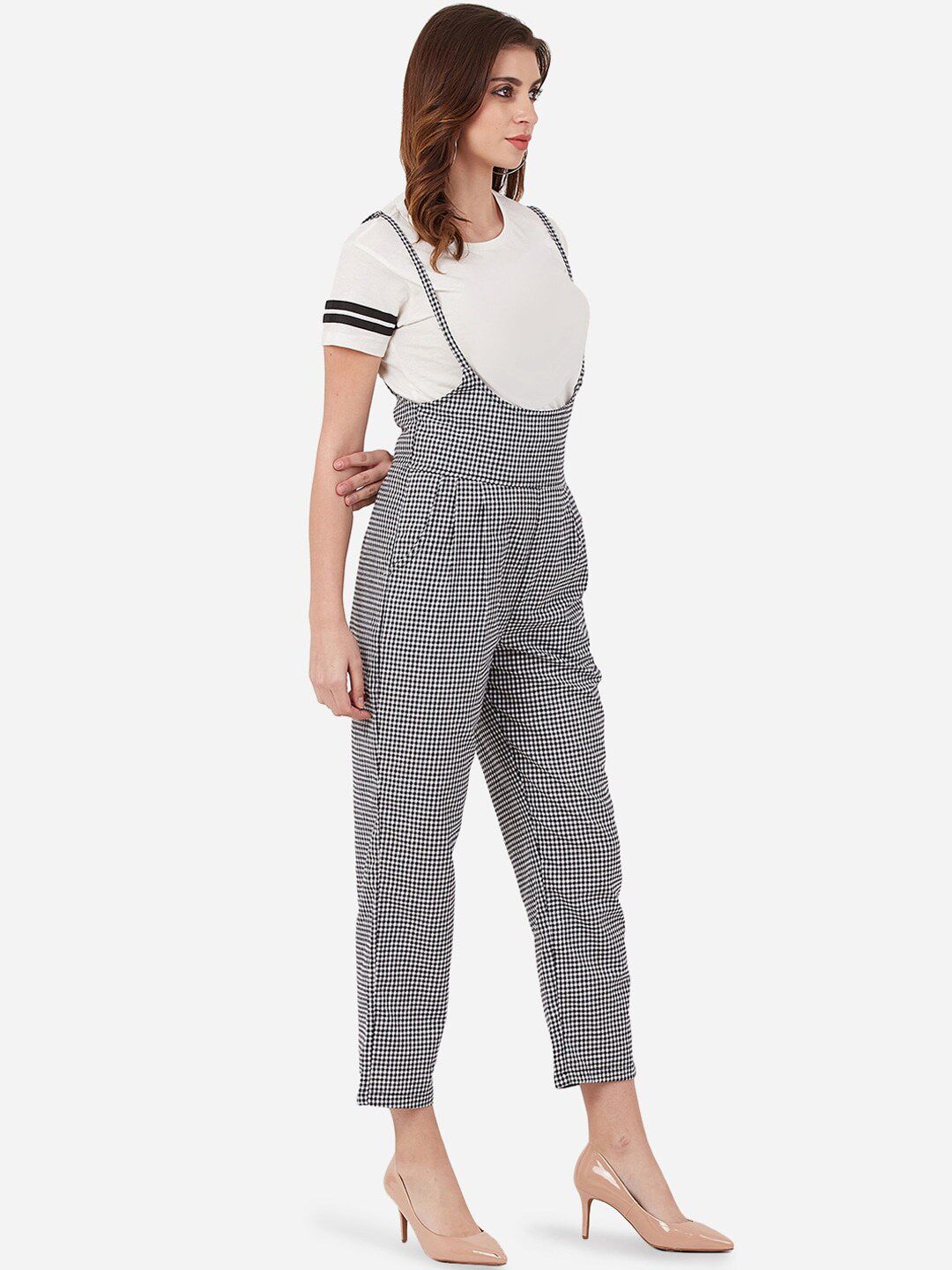 Indietoga Women Black & White Checked Slim-Fit Plus Size Dungarees