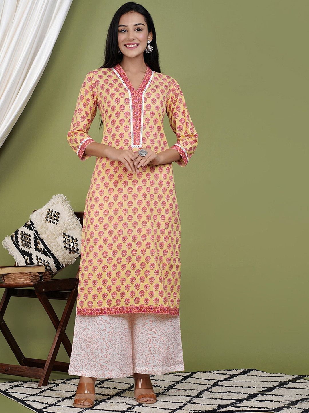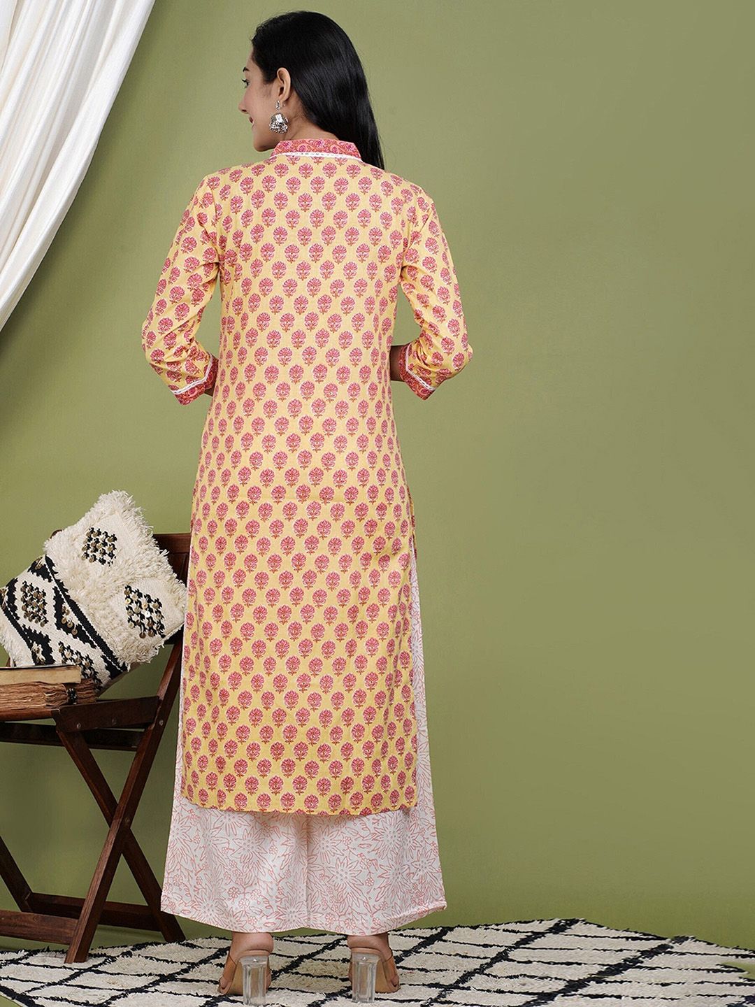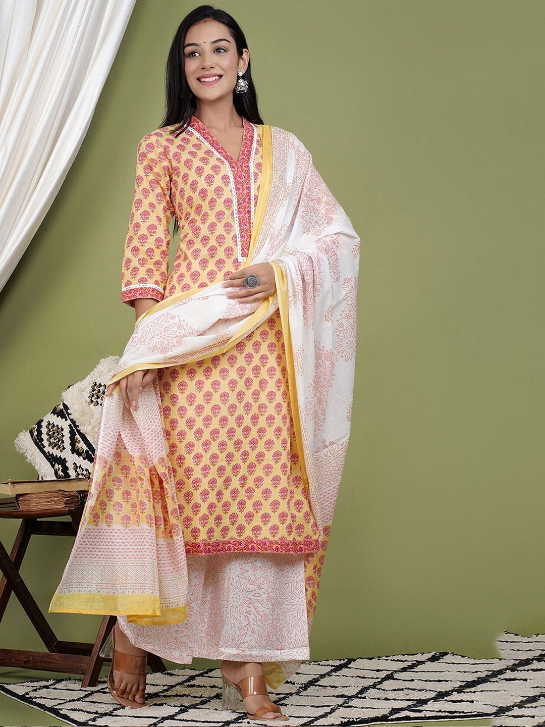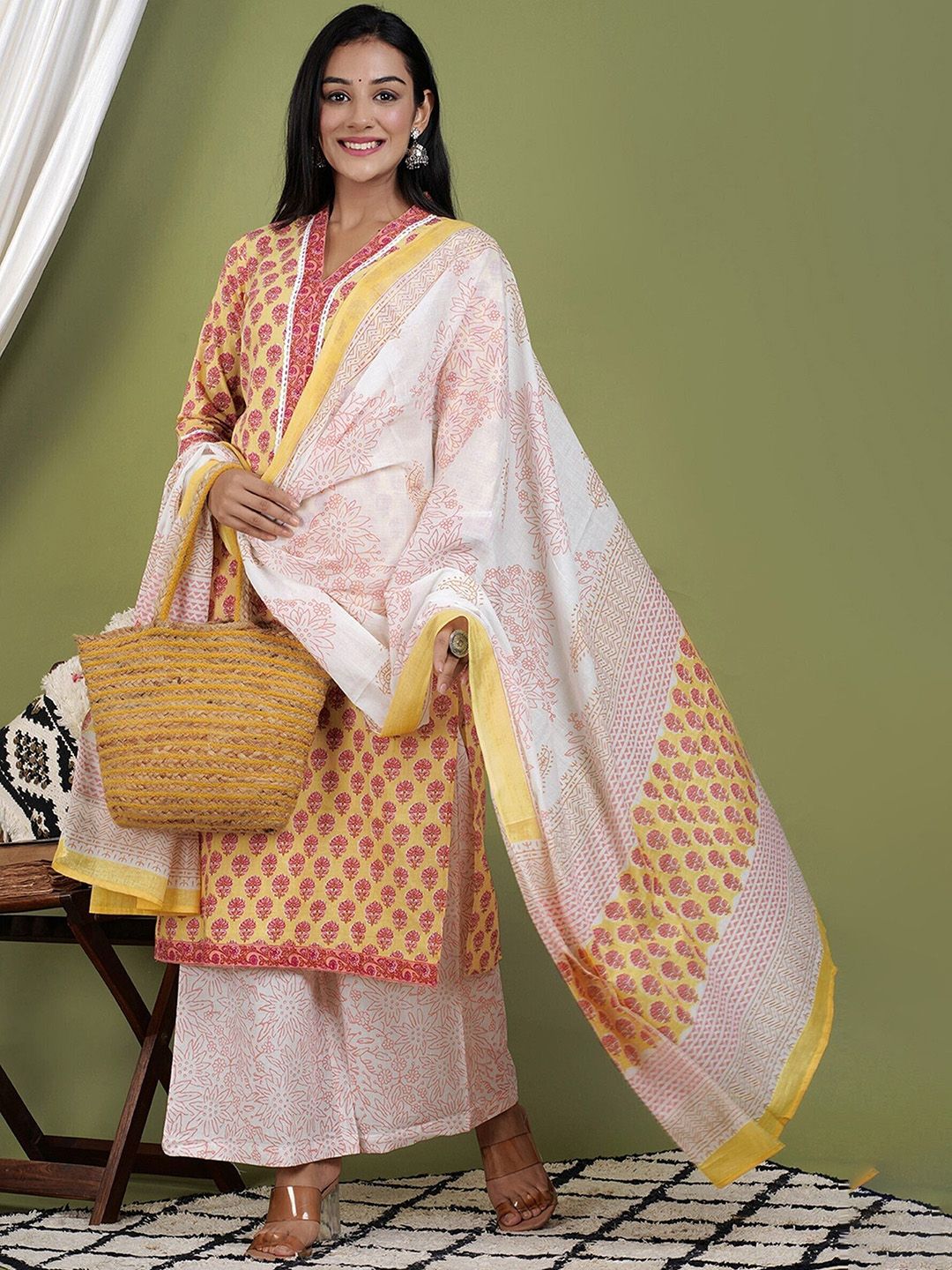 Indiwest Women Floral Printed Cotton Kurta with Palazzo & Dupatta