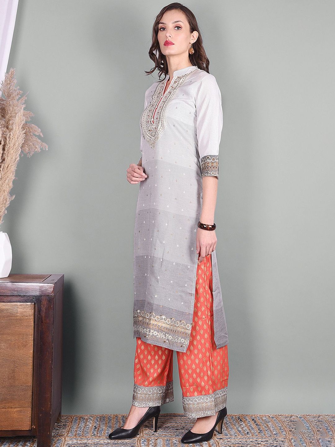 Indiwest Women Floral Printed Cotton Kurta with Palazzo