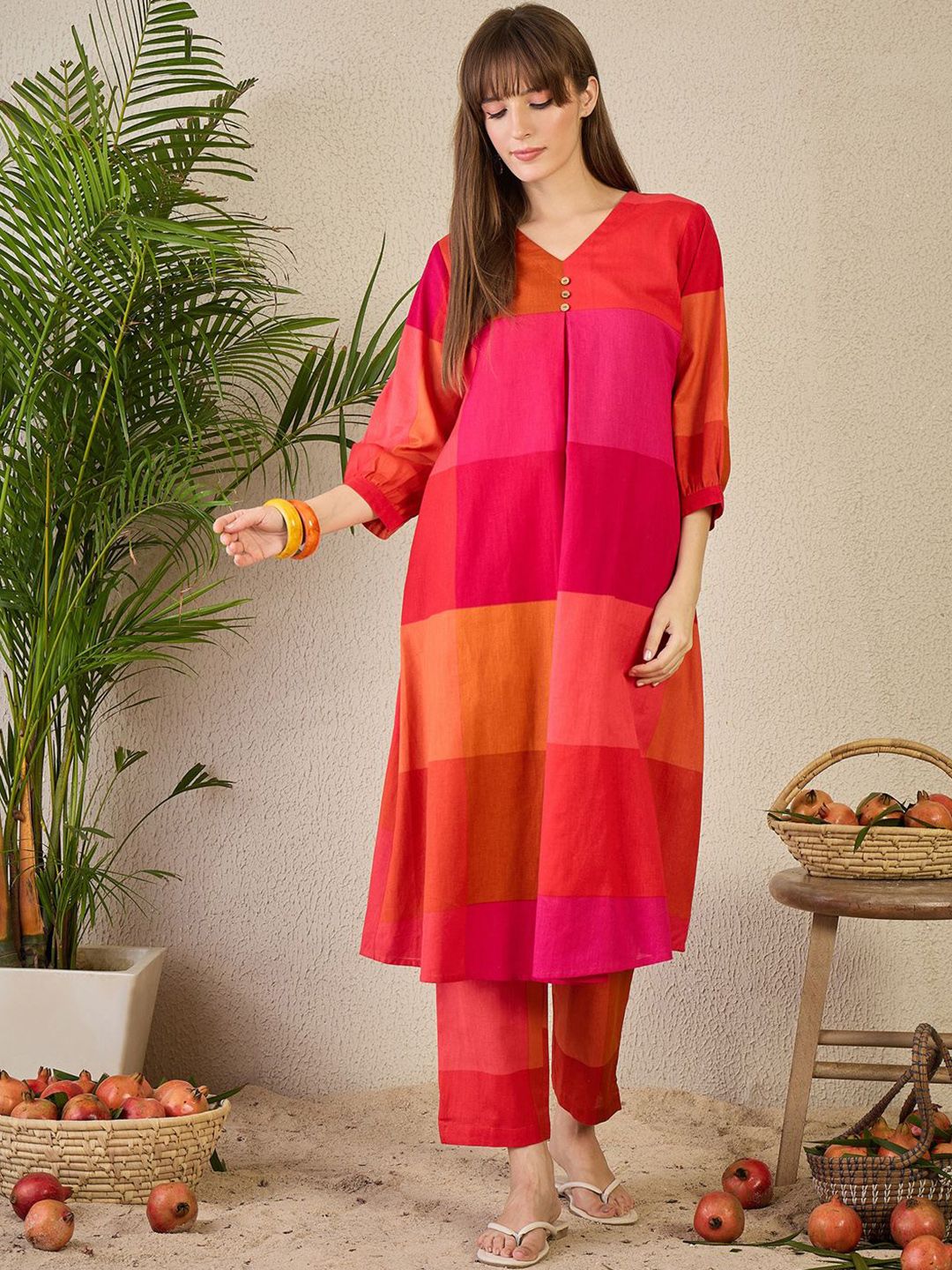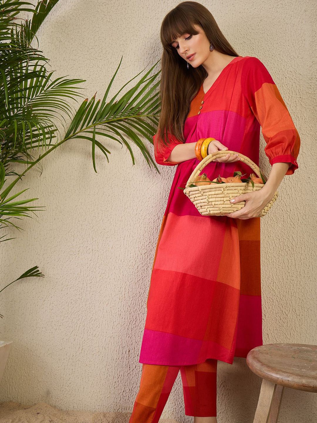 Indo Era Adults-Women Colourblocked A-Line Kurta with Trousers