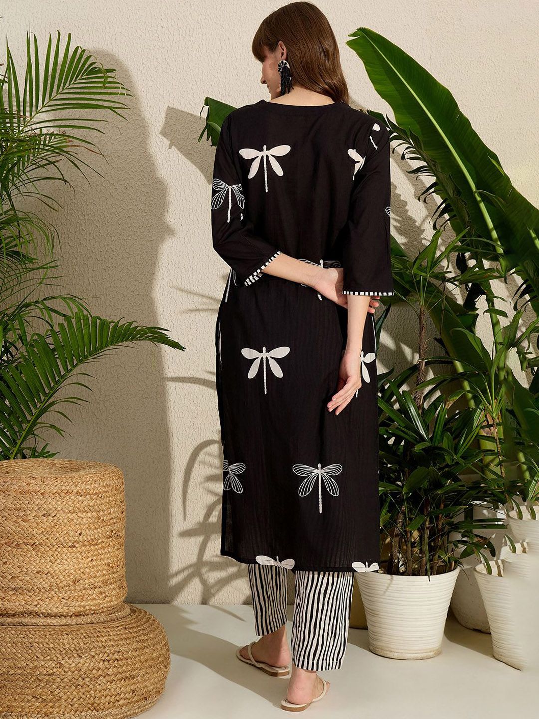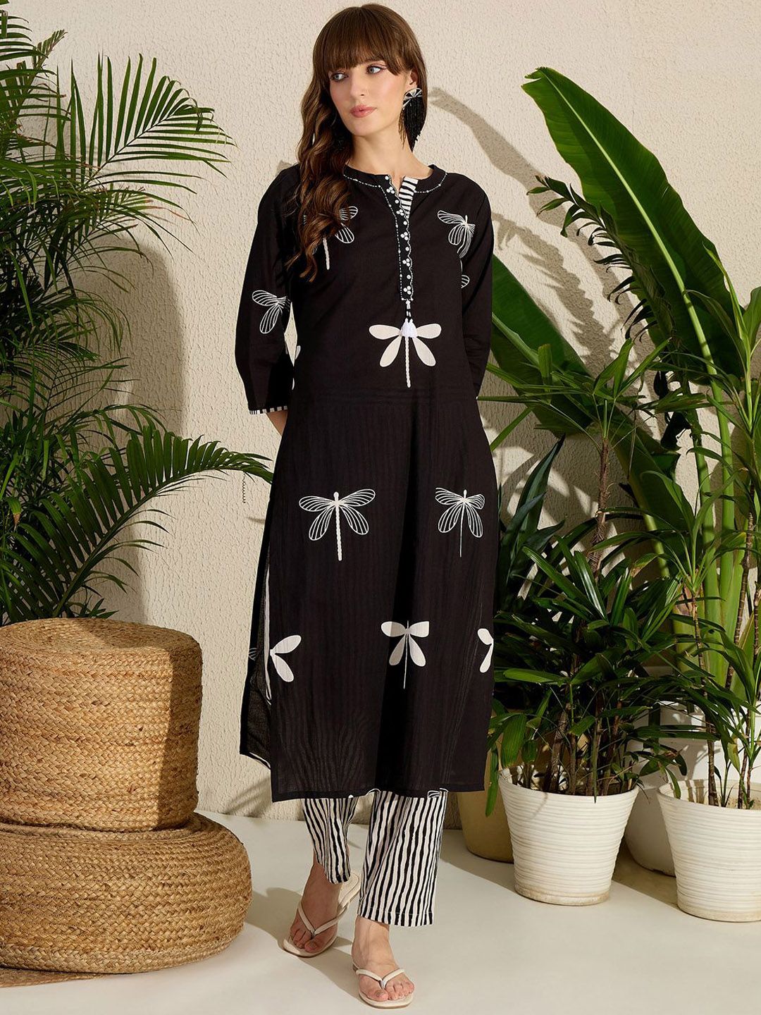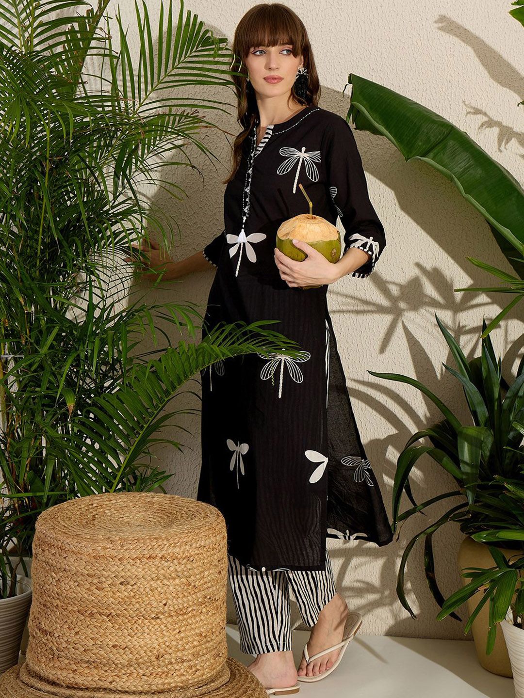 Indo Era Adults-Women Ethnic Motifs Printed Cotton Kurta with Trousers