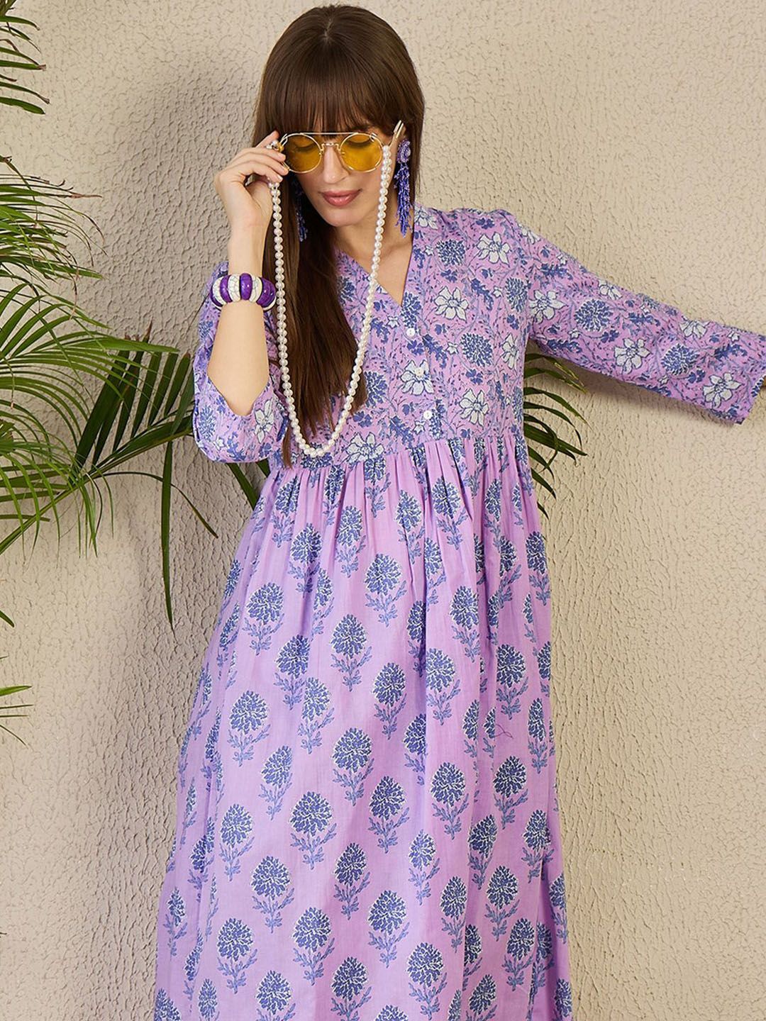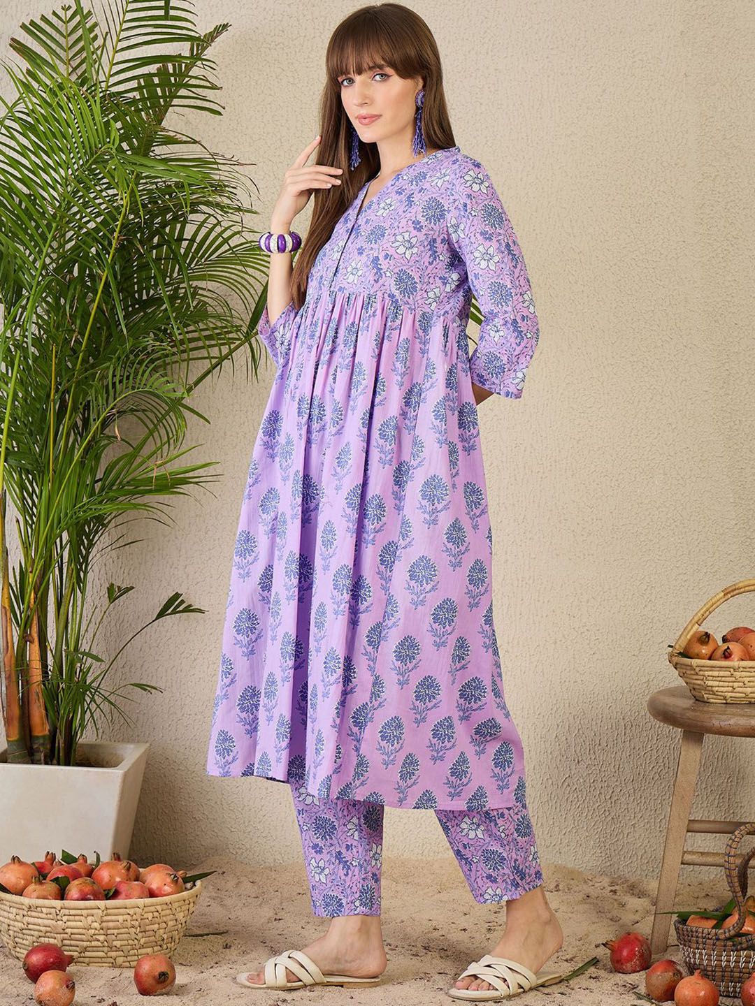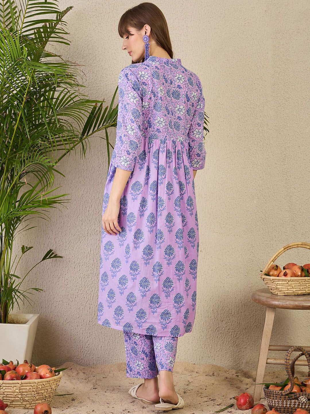 Indo Era Adults-Women Floral Printed Cotton A-Line Kurta with Trousers