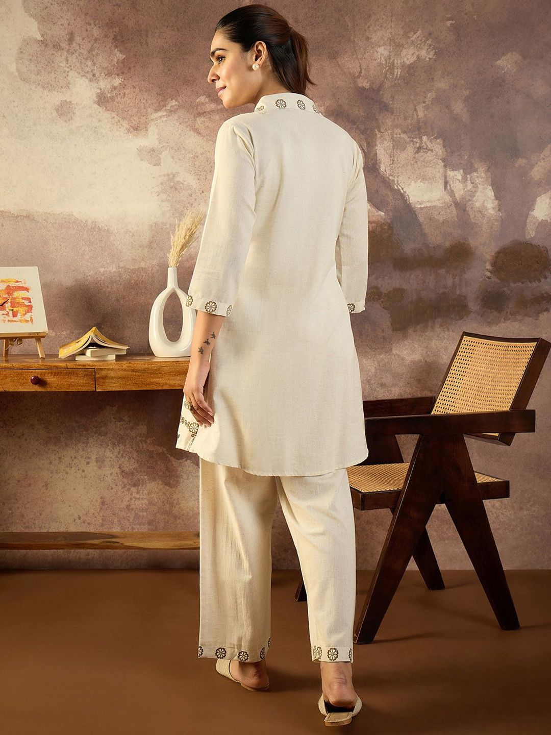 Indo Era Geometric Printed Shirt Collar A-Line Kurta With Trousers