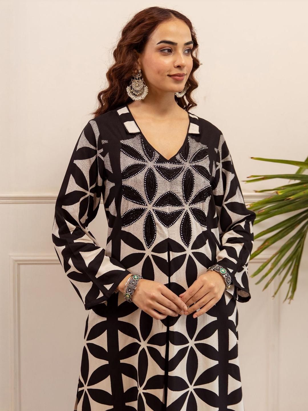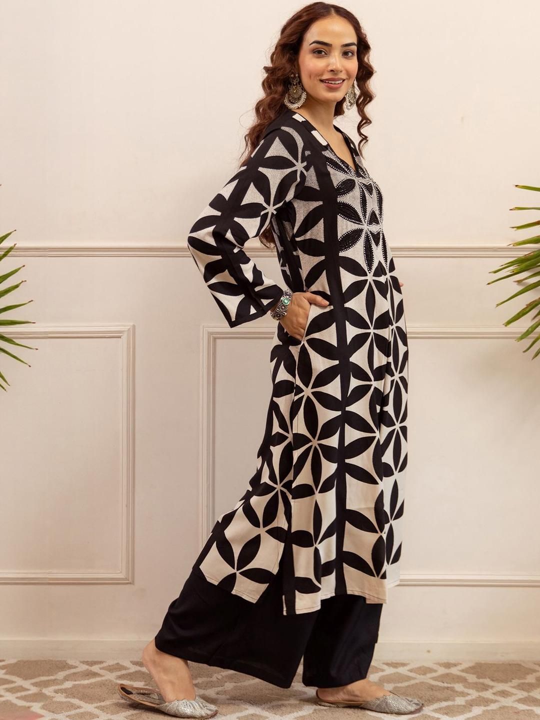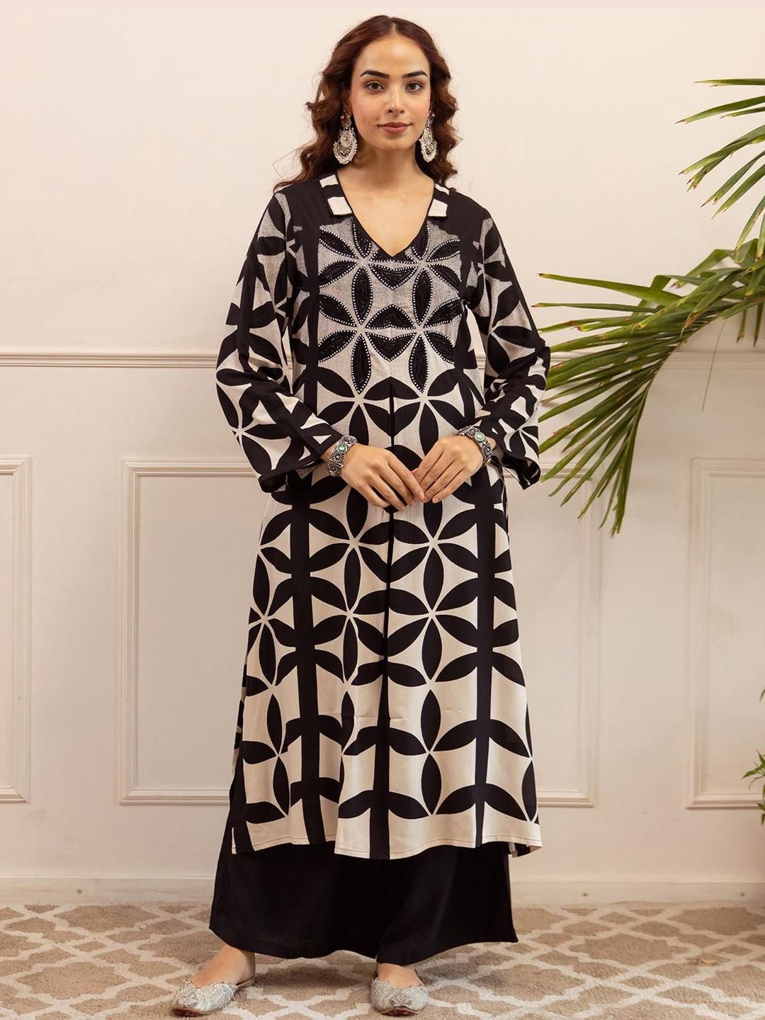 Indo Era Printed A Line Beads and Stones Kurta With Palazzos