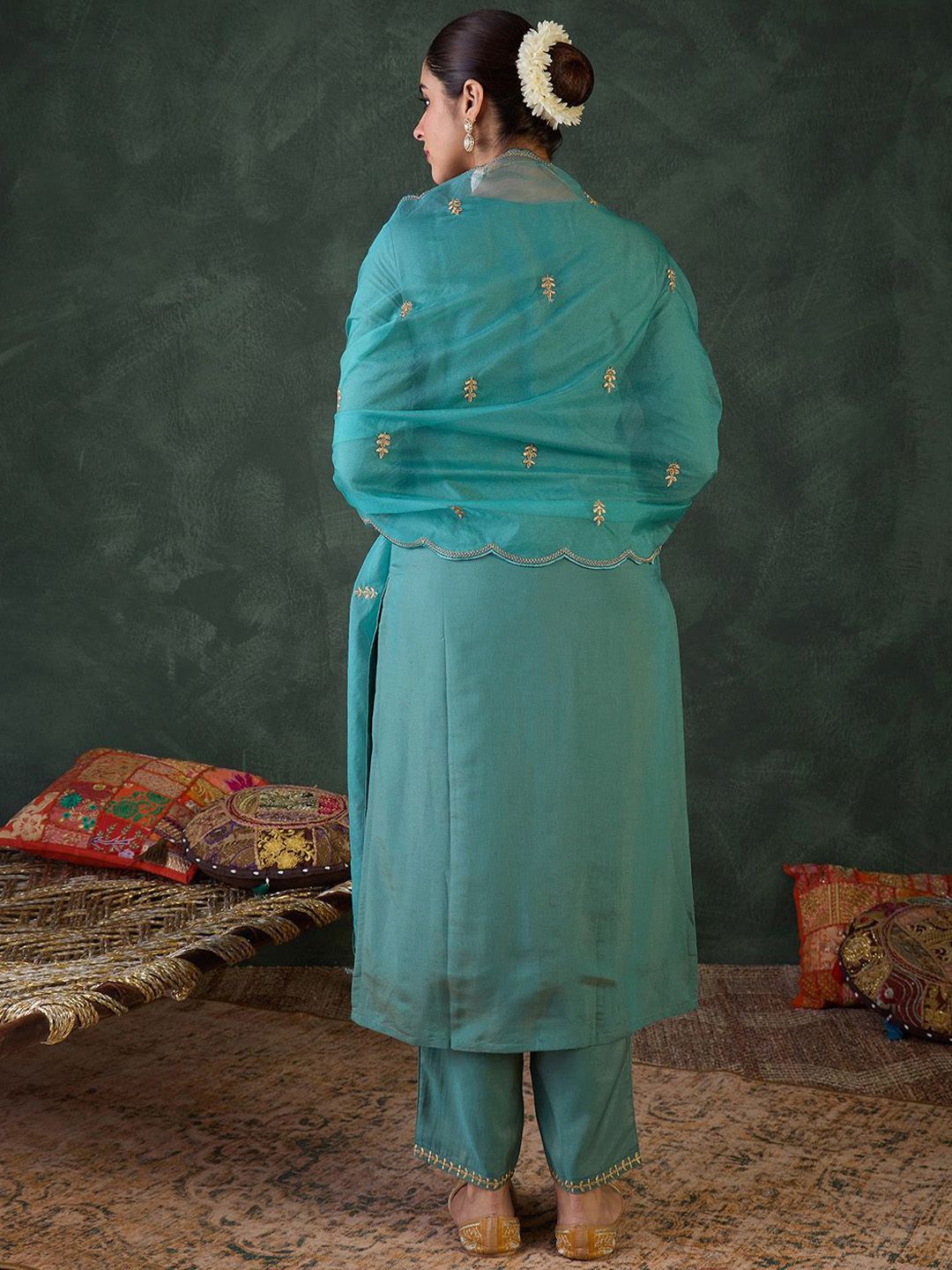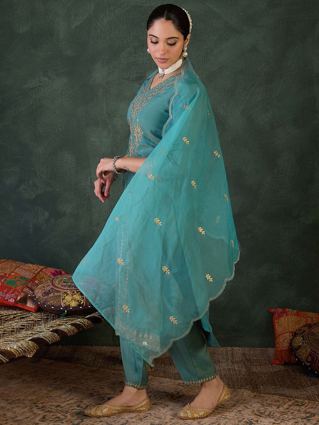 Indo Era Women Ethnic Motifs Embroidered Regular Zari Kurta with Trousers & Dupatta