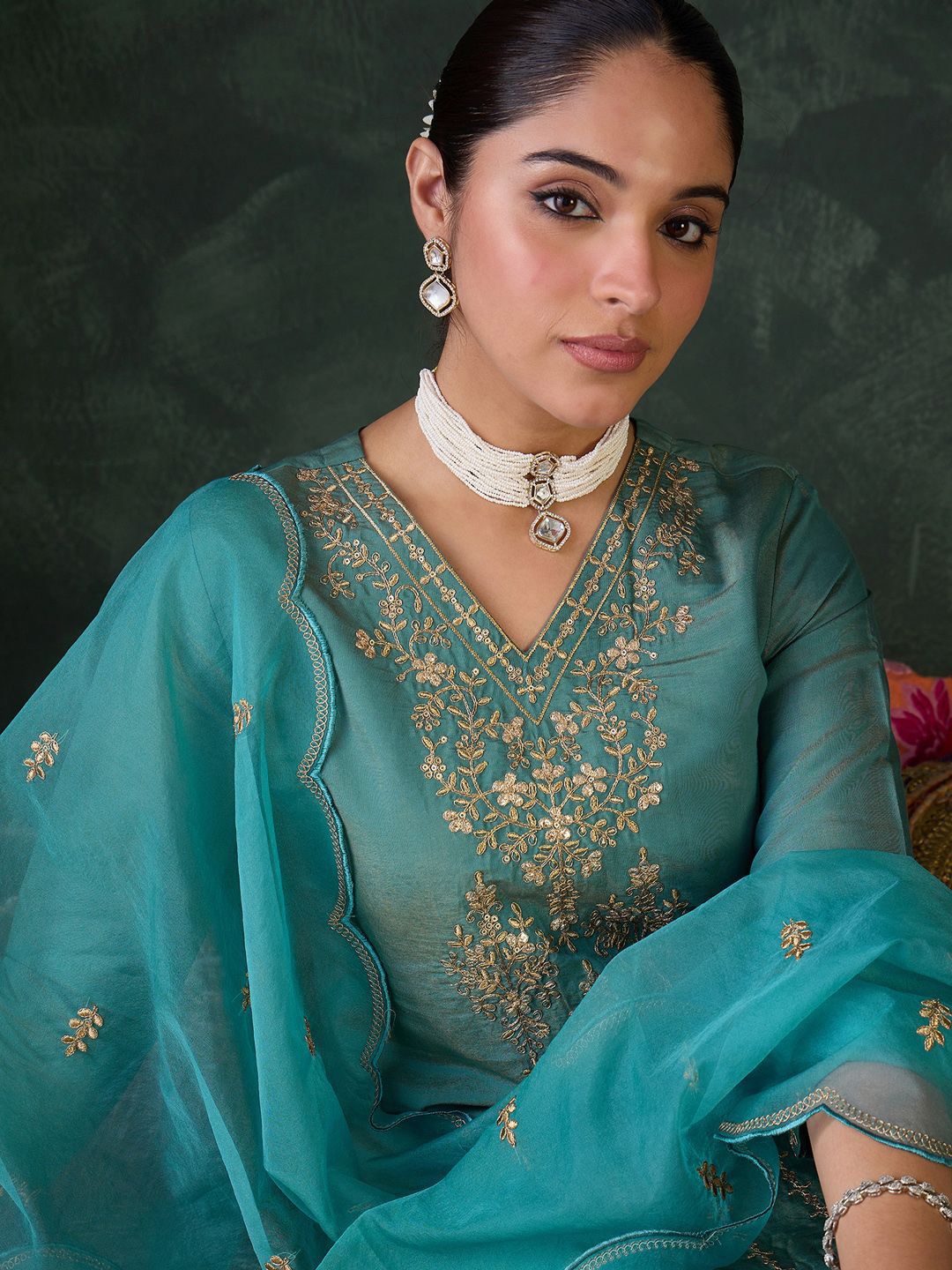 Buy this stylish Indo Era Women Ethnic Motifs Embroidered Regular Zari Kurta with Trousers & Dupatta at Marincart Nepal. This product offers great quality and value. Perfect for those looking for the latest trends in fashion. Get yours now at unbeatable prices.