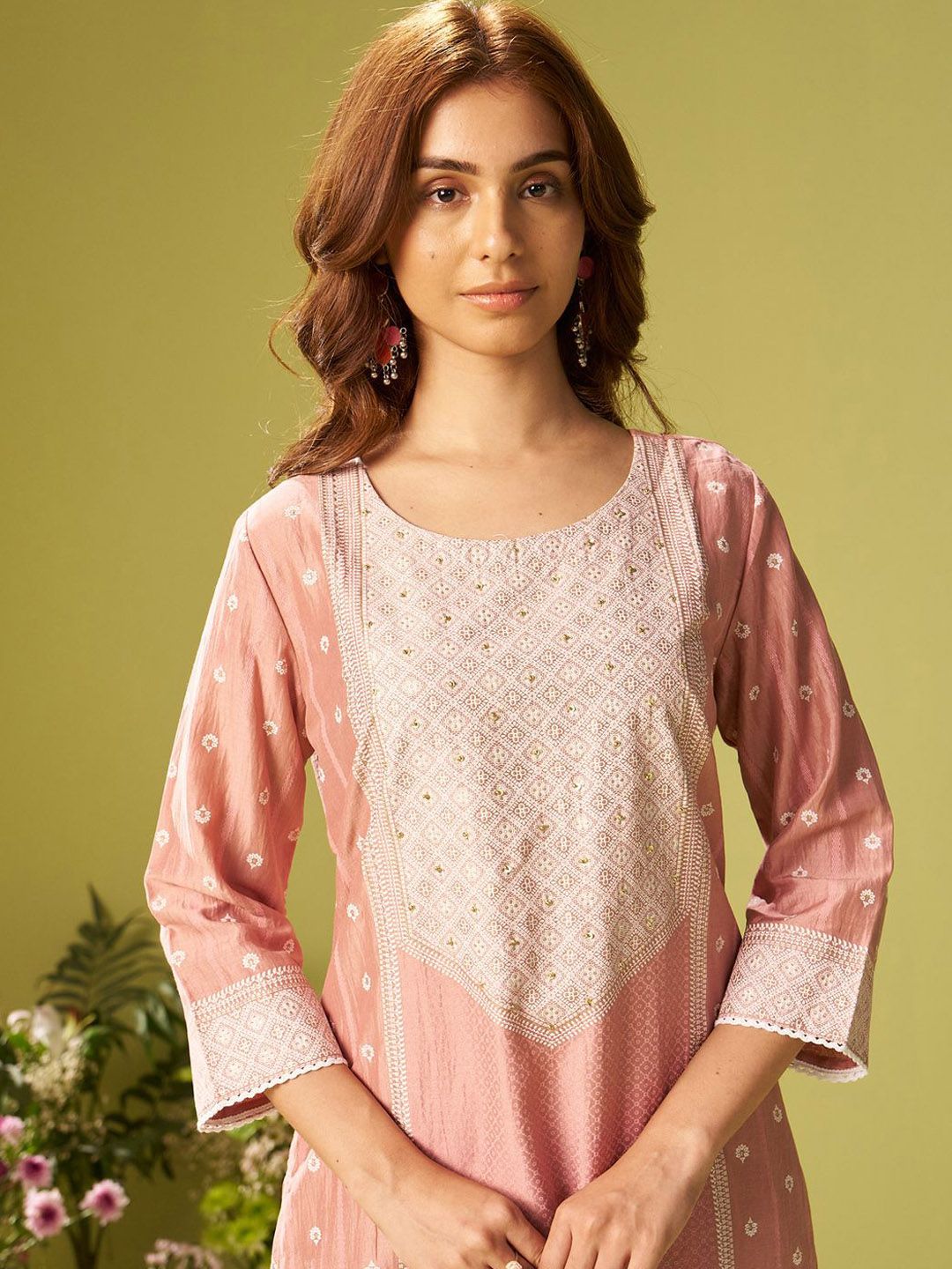 Buy this stylish Indo Era Women Ethnic Motifs Embroidered Thread Work Kurta with Trousers & Dupatta at Marincart Nepal. This product offers great quality and value. Perfect for those looking for the latest trends in fashion. Get yours now at unbeatable prices.
