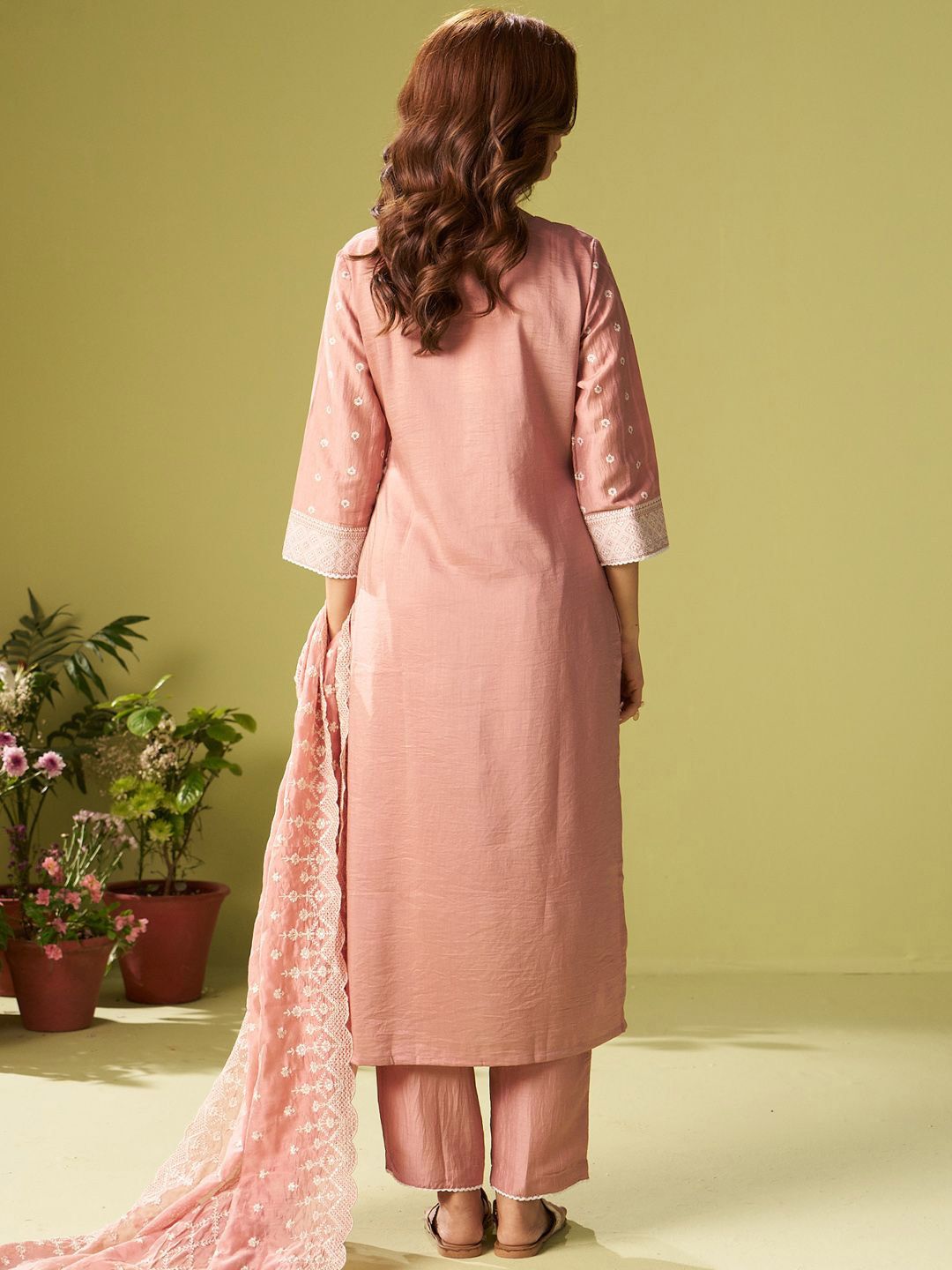Indo Era Women Ethnic Motifs Embroidered Thread Work Kurta with Trousers & Dupatta