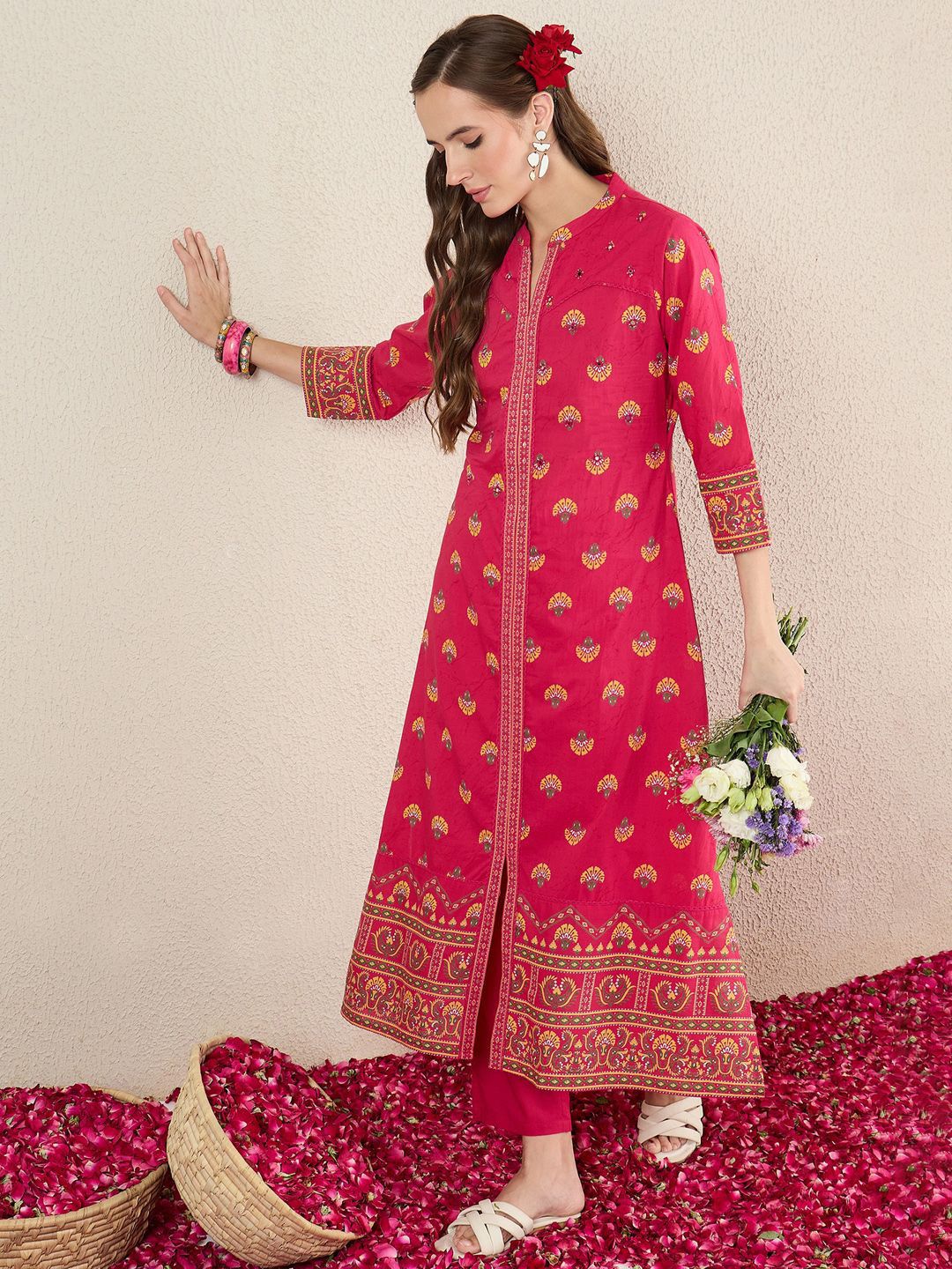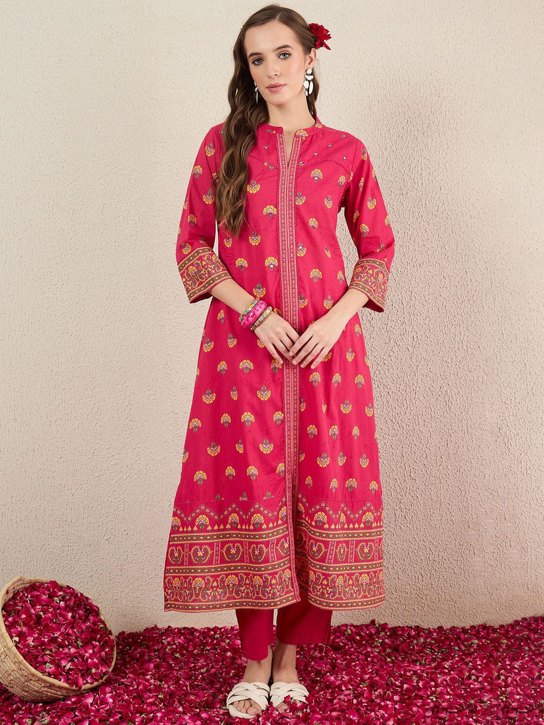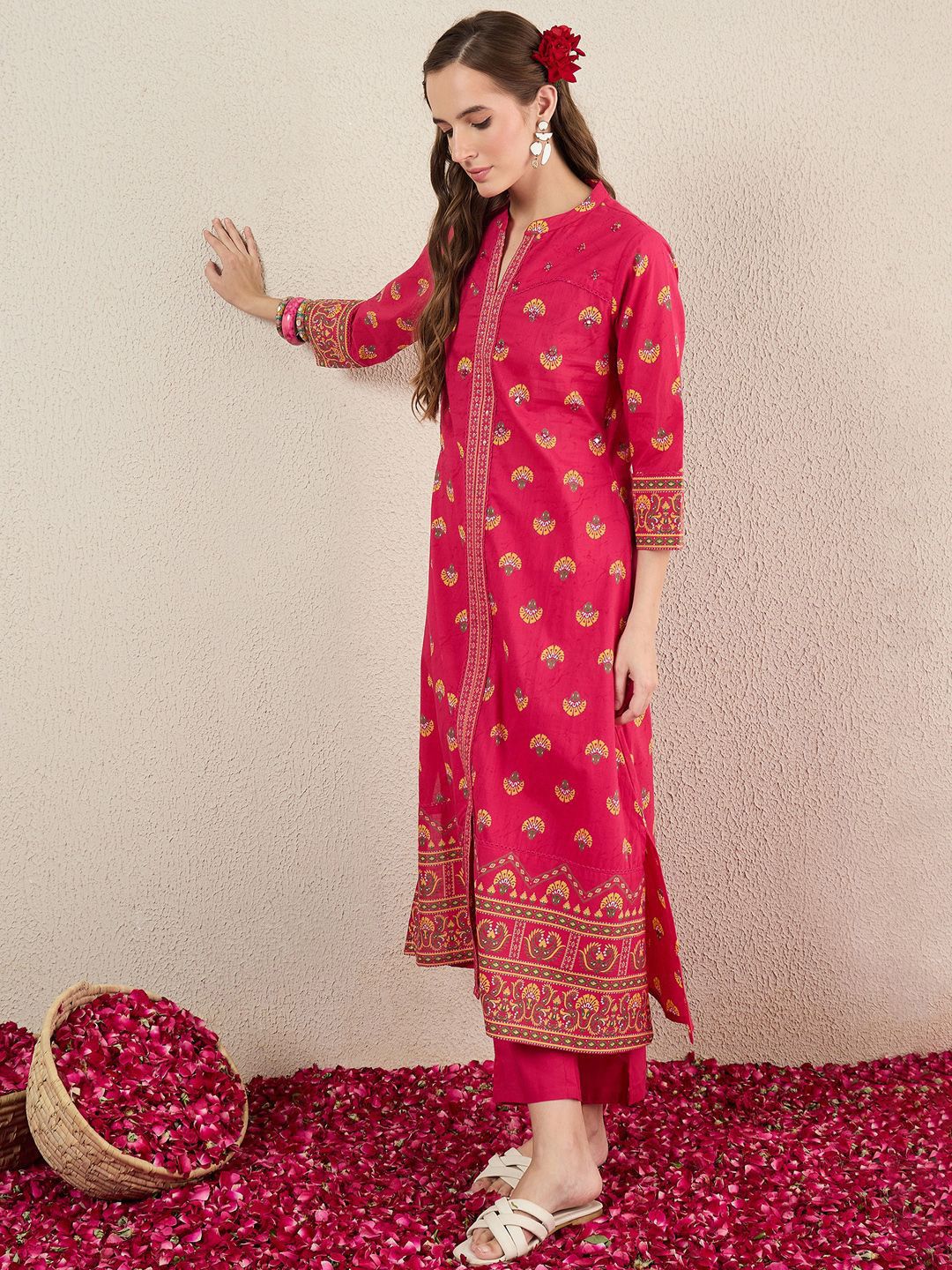 Indo Era Women Ethnic Motifs Printed Cotton Kurta with Trousers