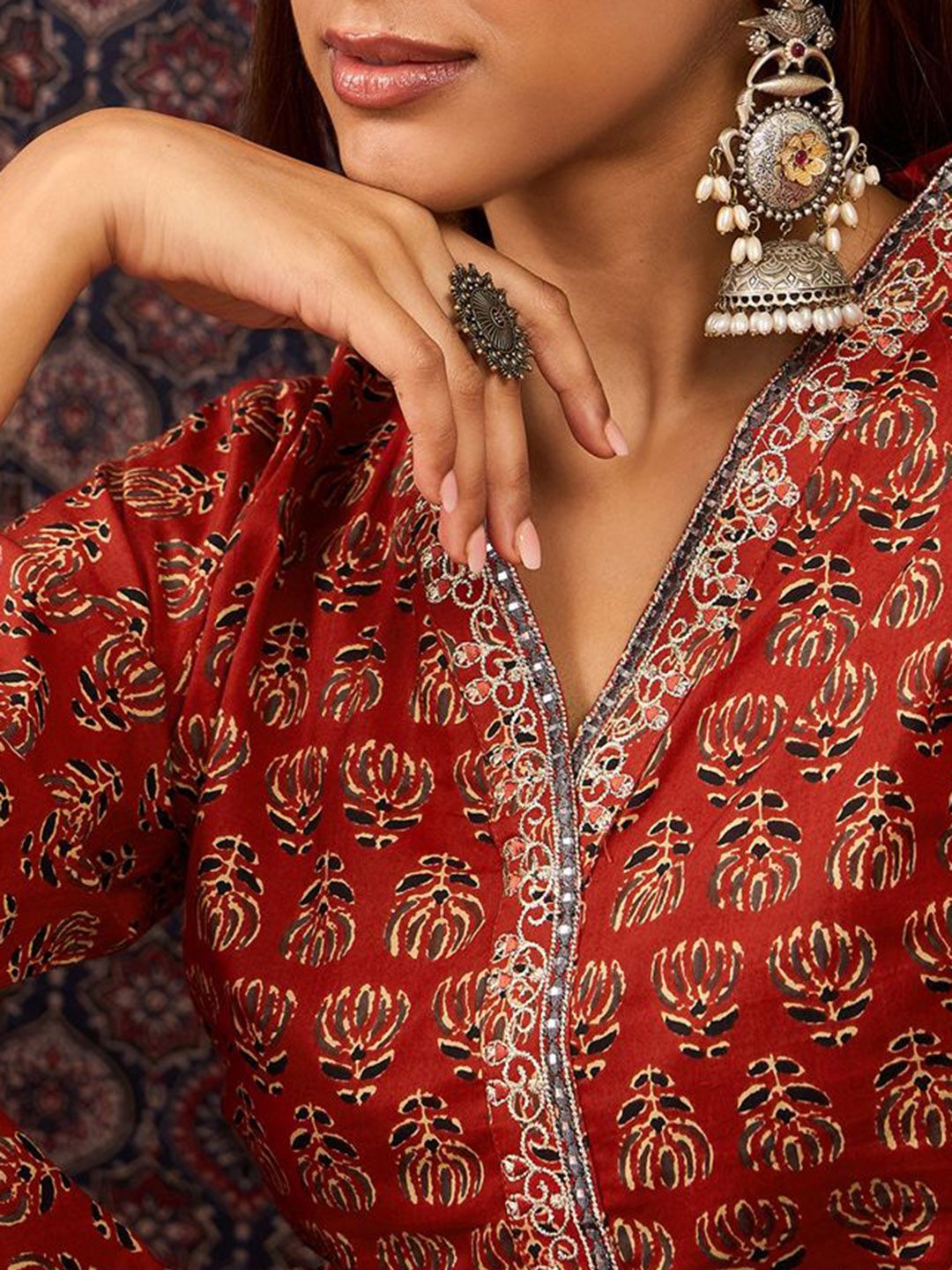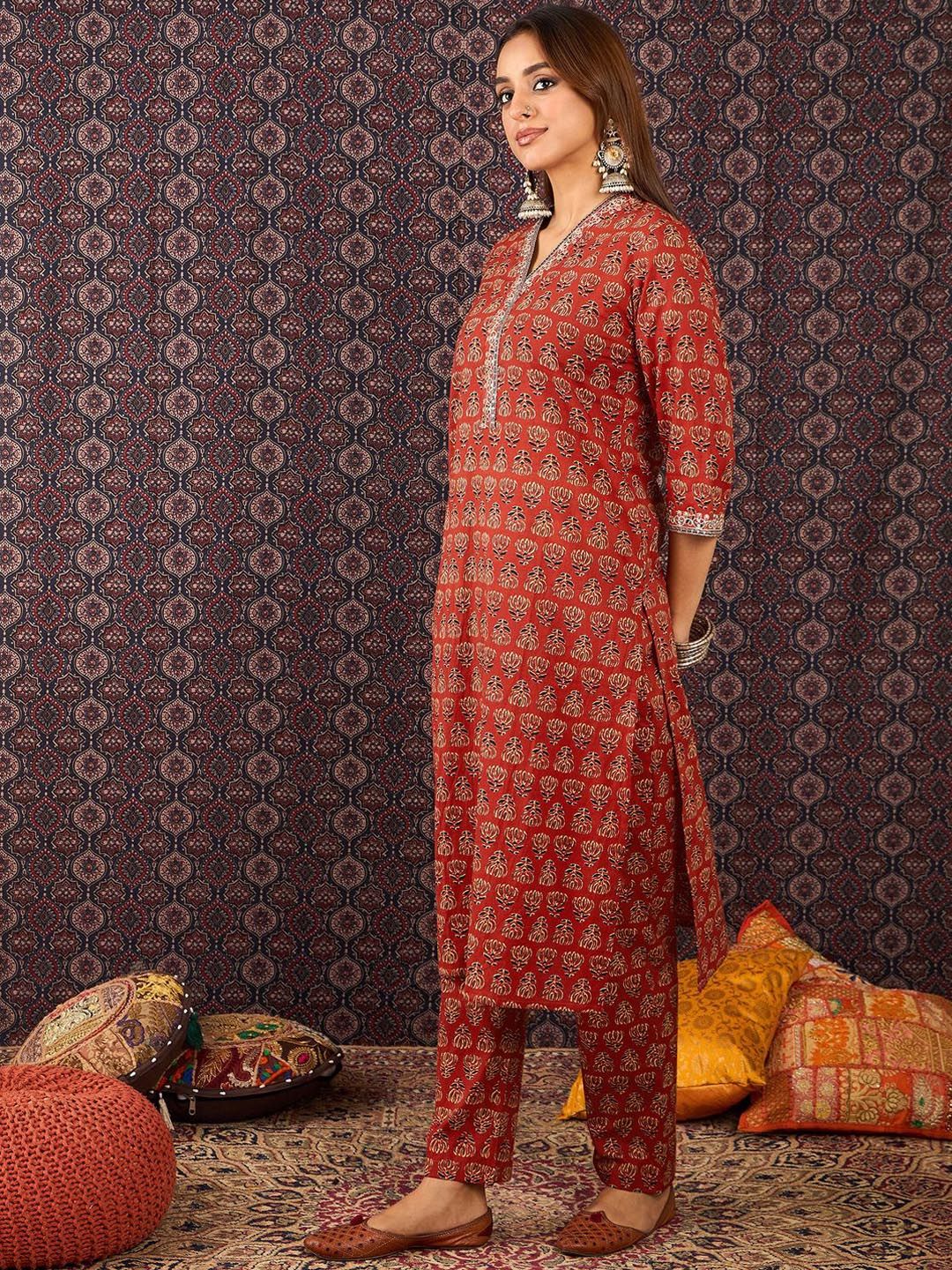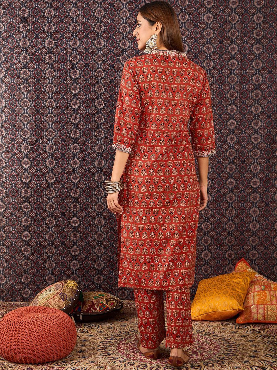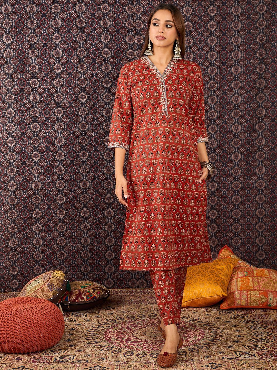 Indo Era Women Ethnic Motifs Printed Straight Pure Cotton Kurta with Trouser