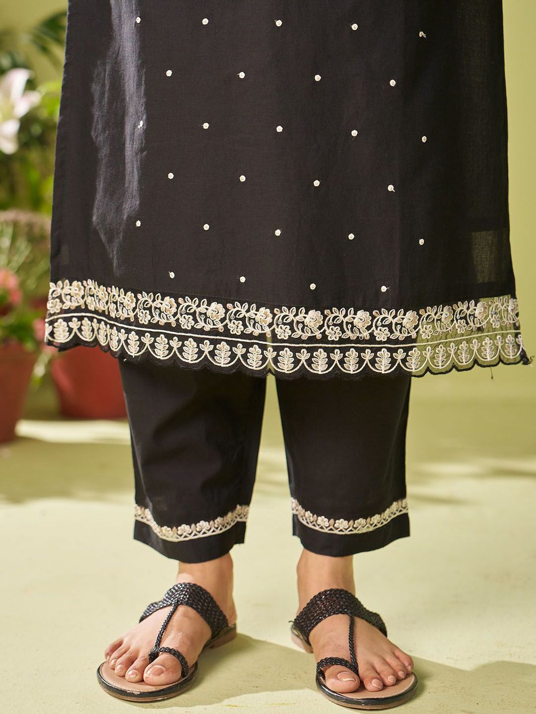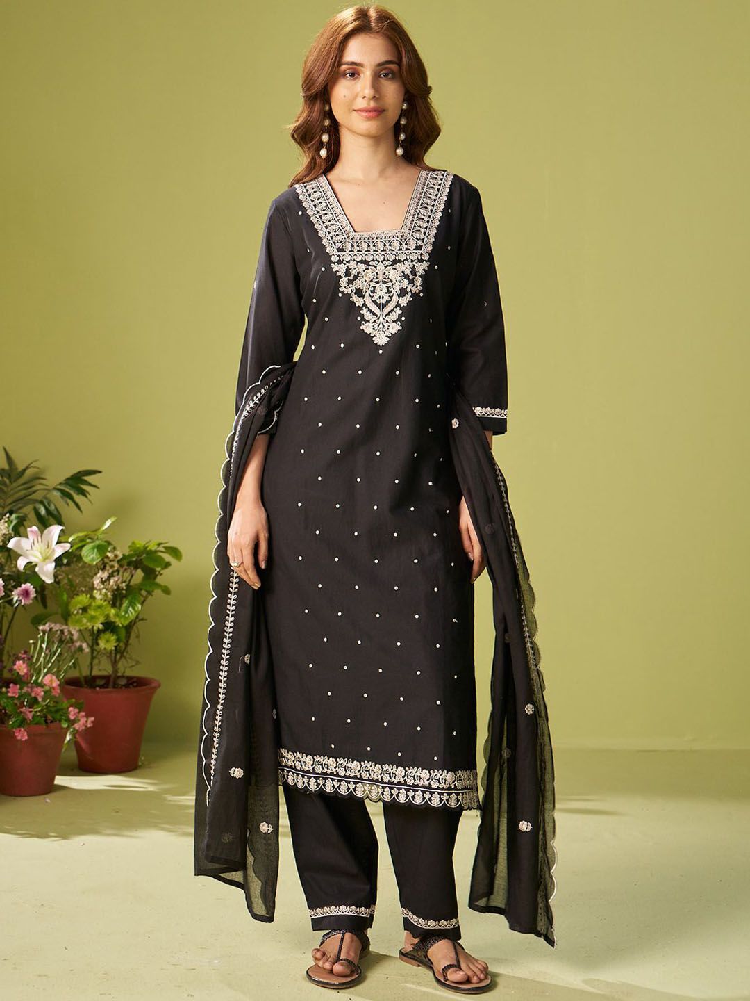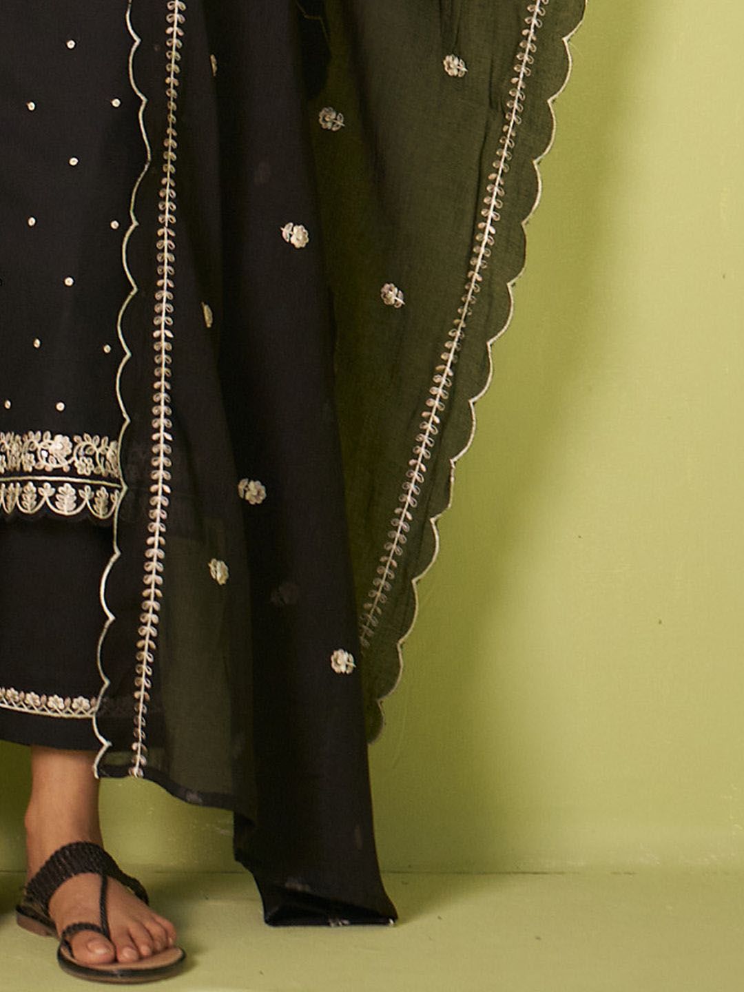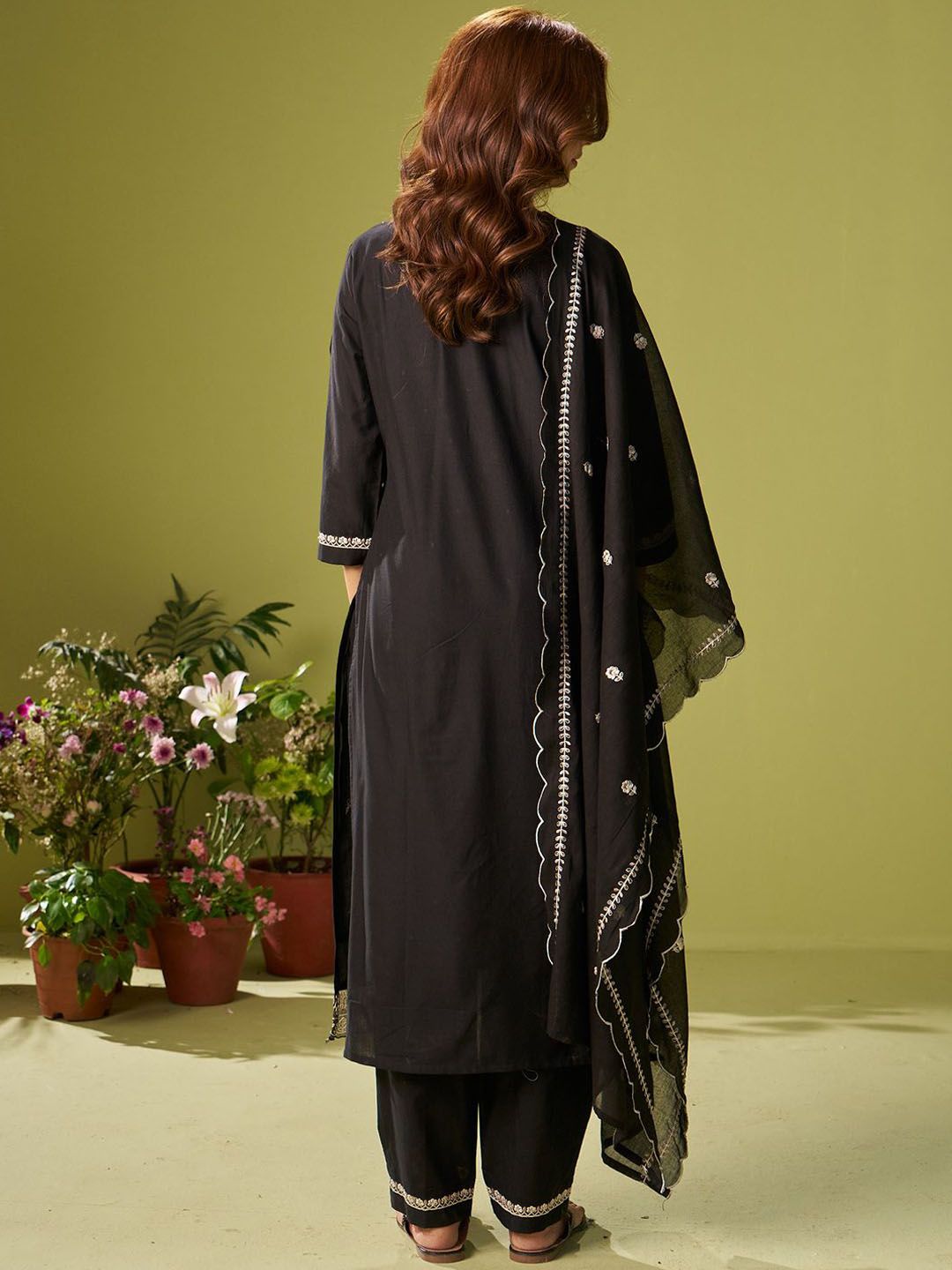 Indo Era Women Floral Embroidered Cotton Kurta with Trousers & Dupatta