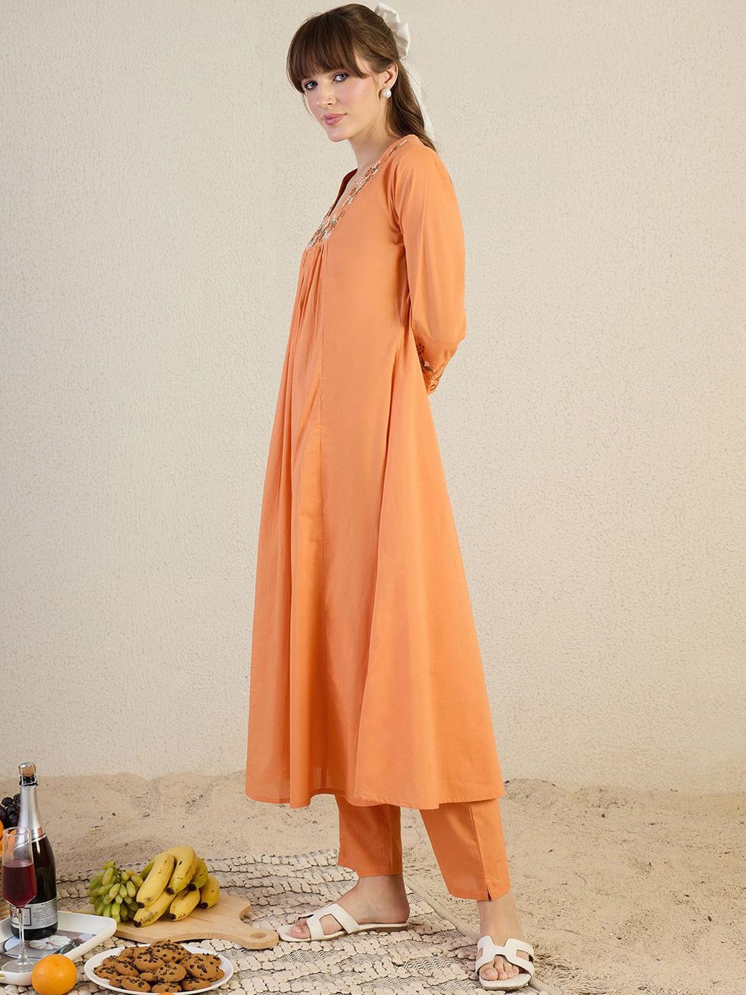 Indo Era Women Floral Embroidered Cotton Kurta with Trousers