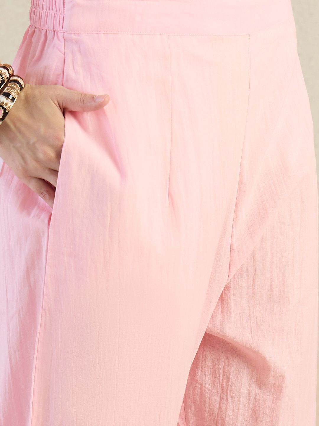 Indo Era Women Floral Embroidered Cotton Kurta with Trousers