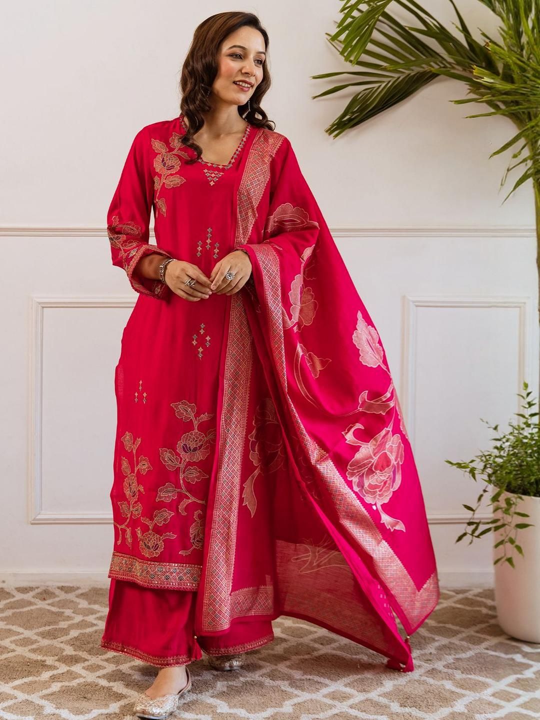 Indo Era Women Floral Embroidered Kurta with Sharara & Dupatta
