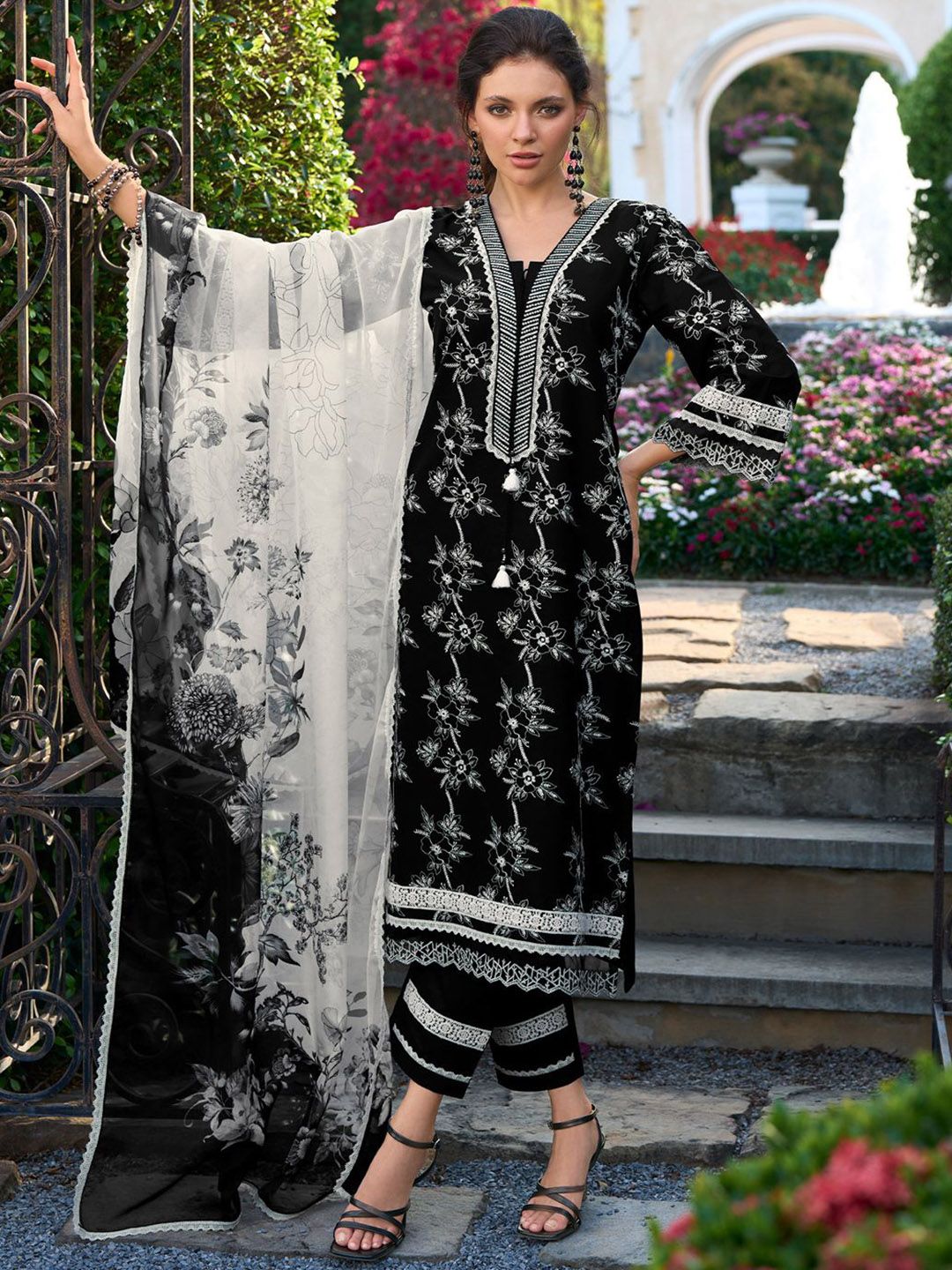 Indo Era Women Floral Embroidered Regular Thread Work Pure Cotton Kurta Set