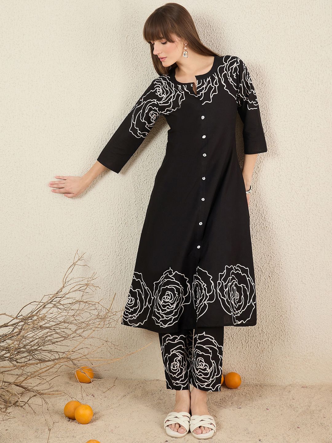 Indo Era Women Floral Print Regular Pure Cotton Kurta Sets
