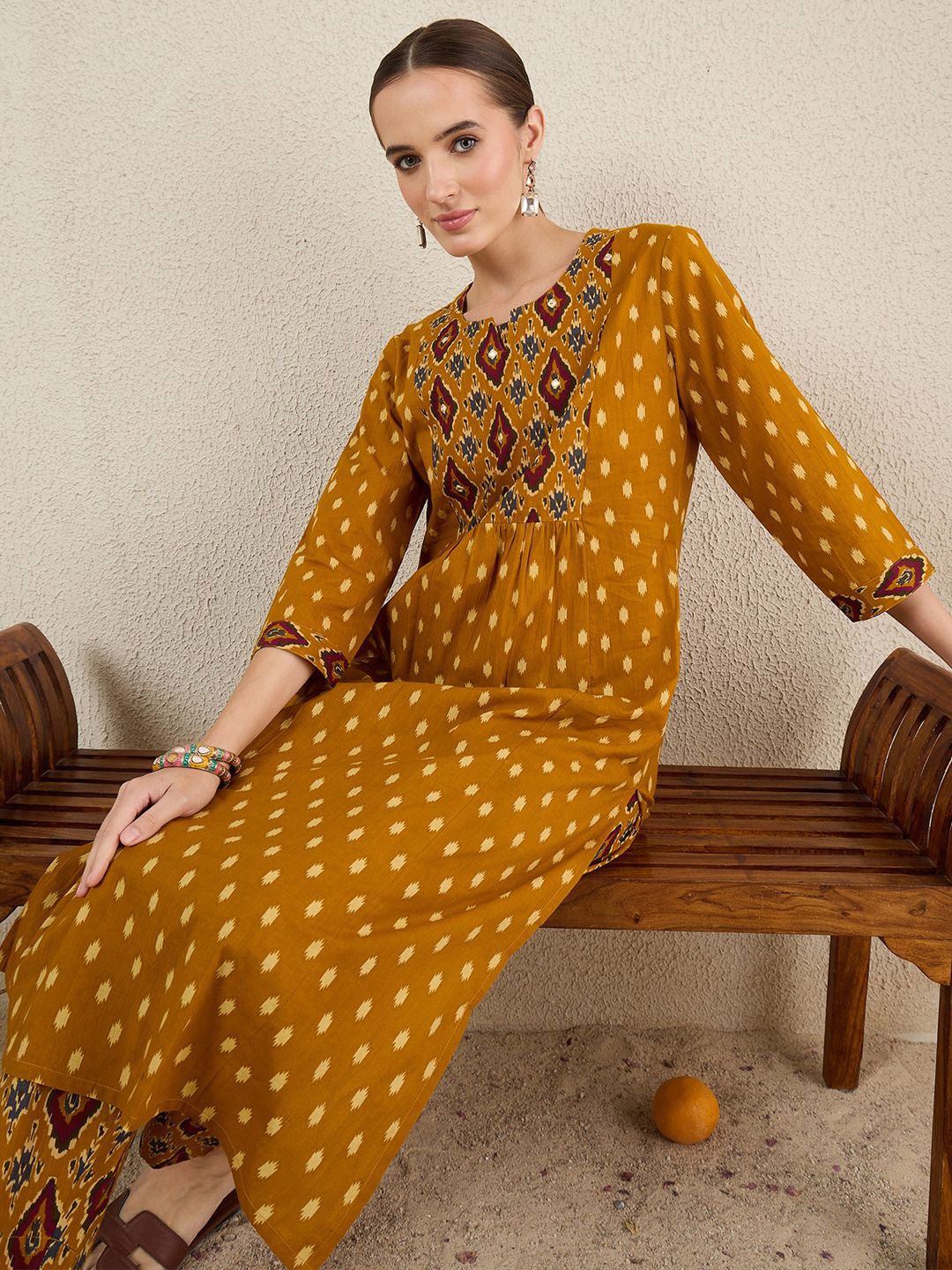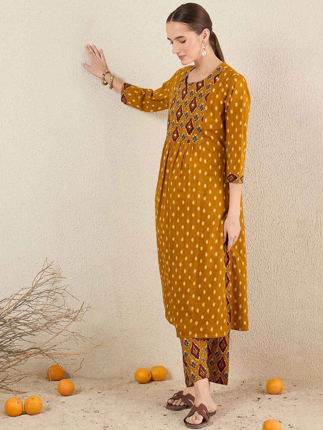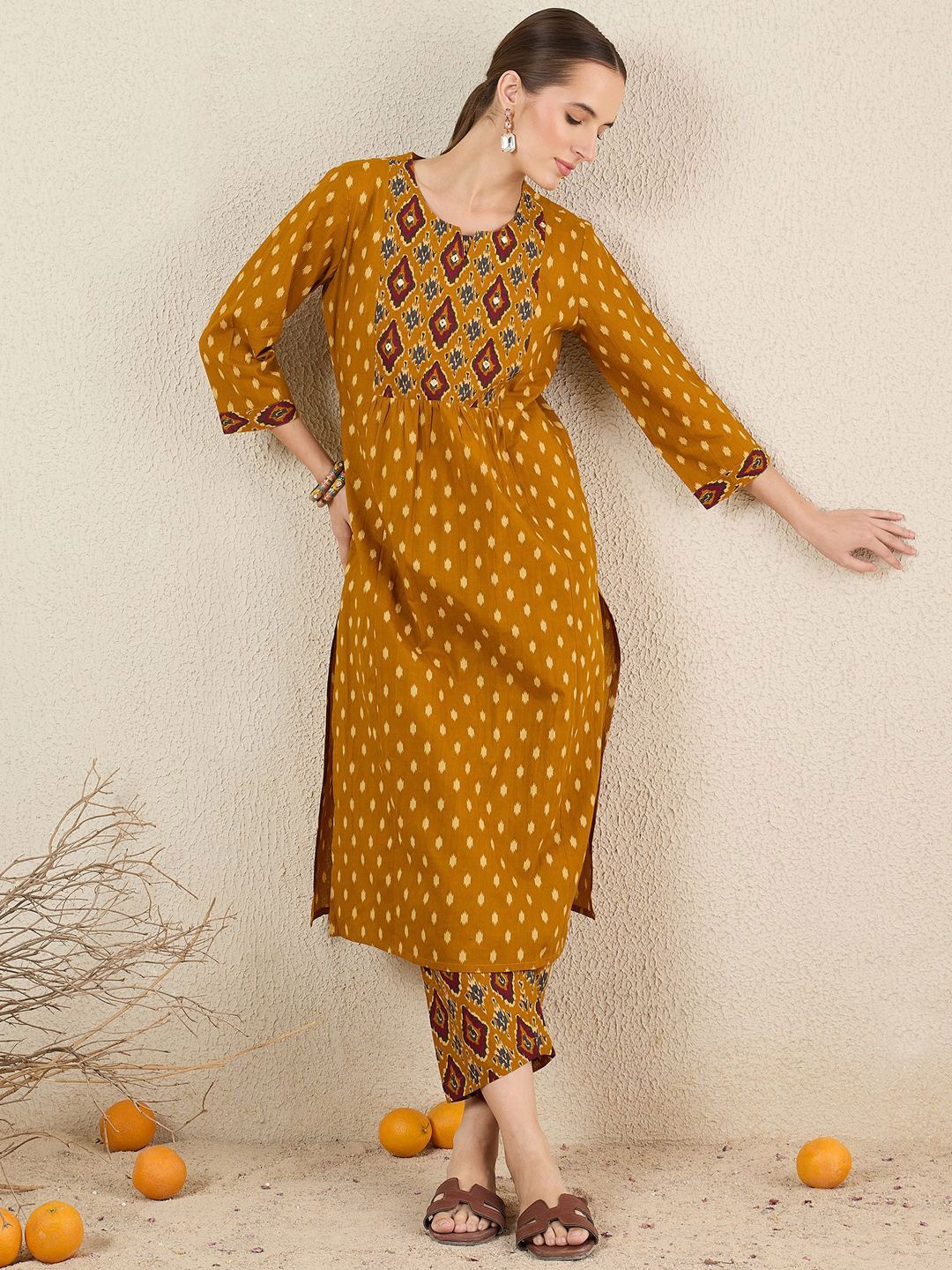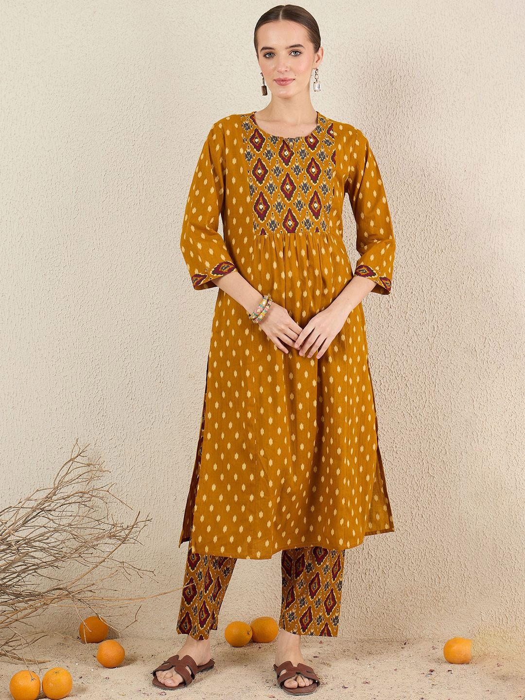 Indo Era Women Geometric Printed Cotton Kurta with Trousers