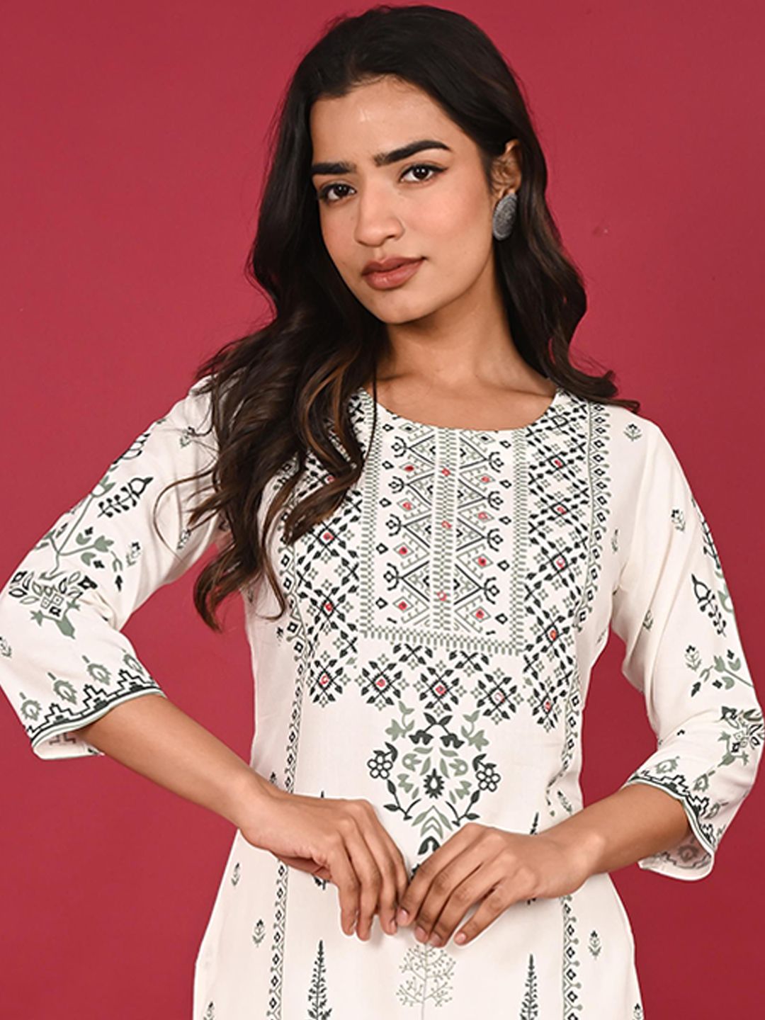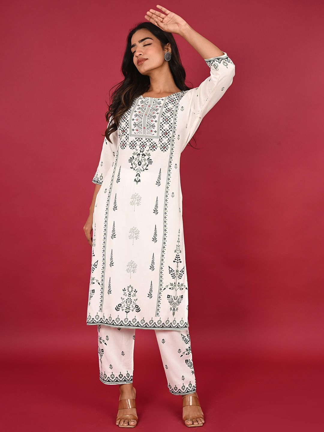 INDULI Ethnic Motifs Printed Straight Kurta With Trouser