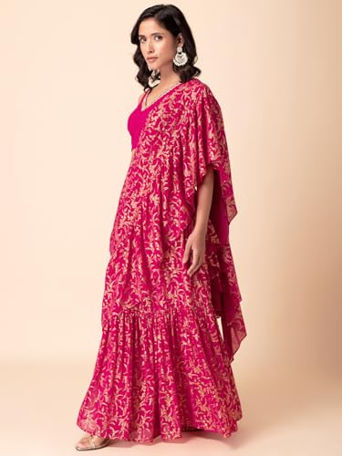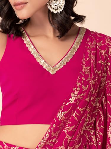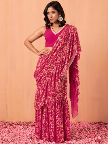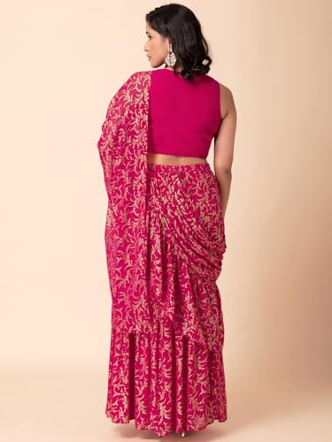 Indya Women's Polyester Foil Print Ready to Wear Saree