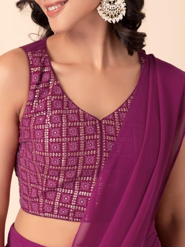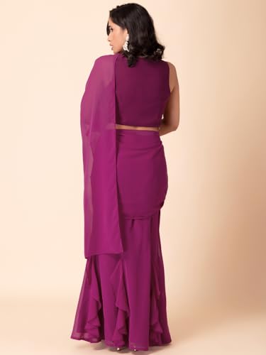 Indya Women's Woven Georgette Saree (ICO00539B_Purple)