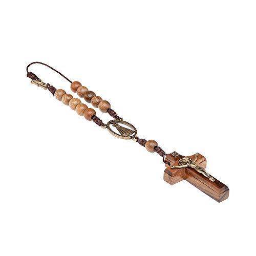 Intercession Car Rearview Mirror Rosary Decade Crucifix Ornament - Made in Brazil (Aparecida One Decade - Antique Gold - 10mm Beads)