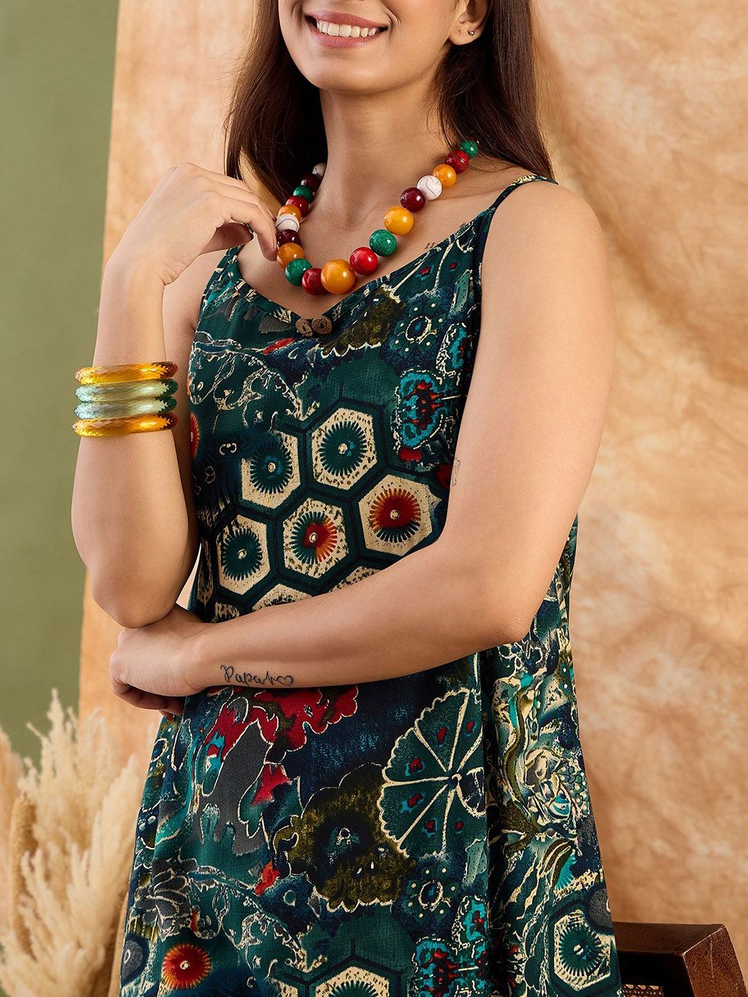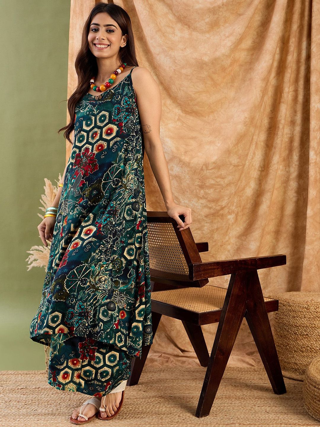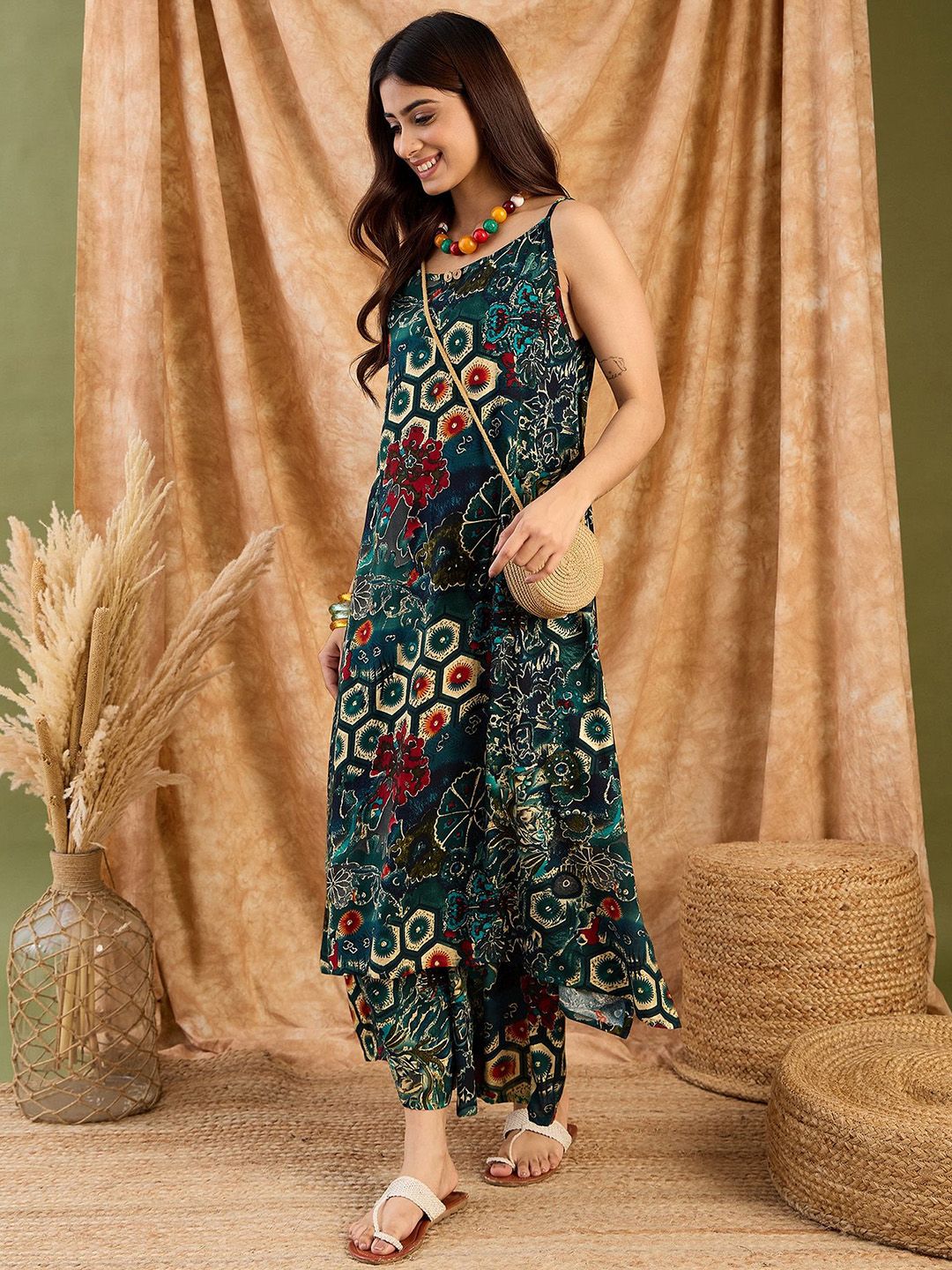 InWeave Floral Printed Shoulder Strap Straight Kurta With Trouser