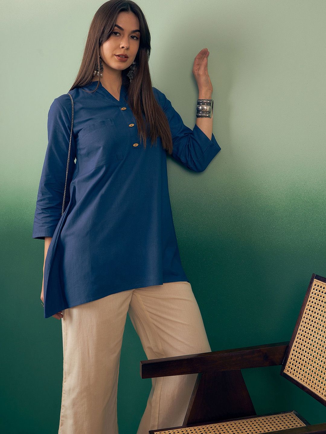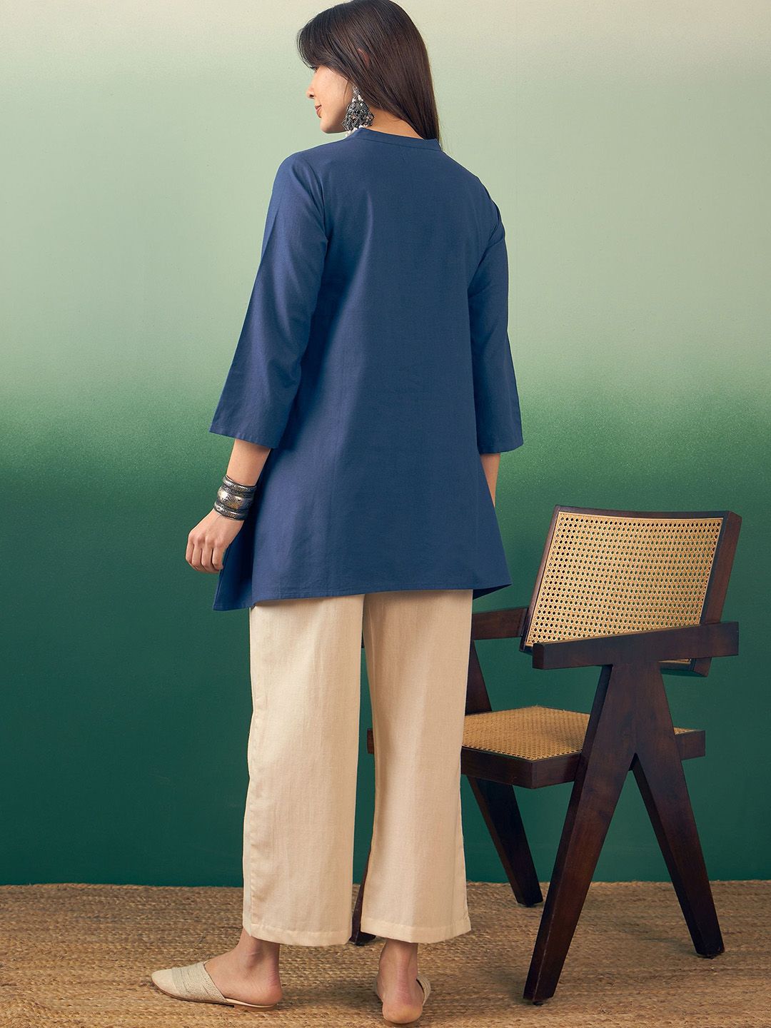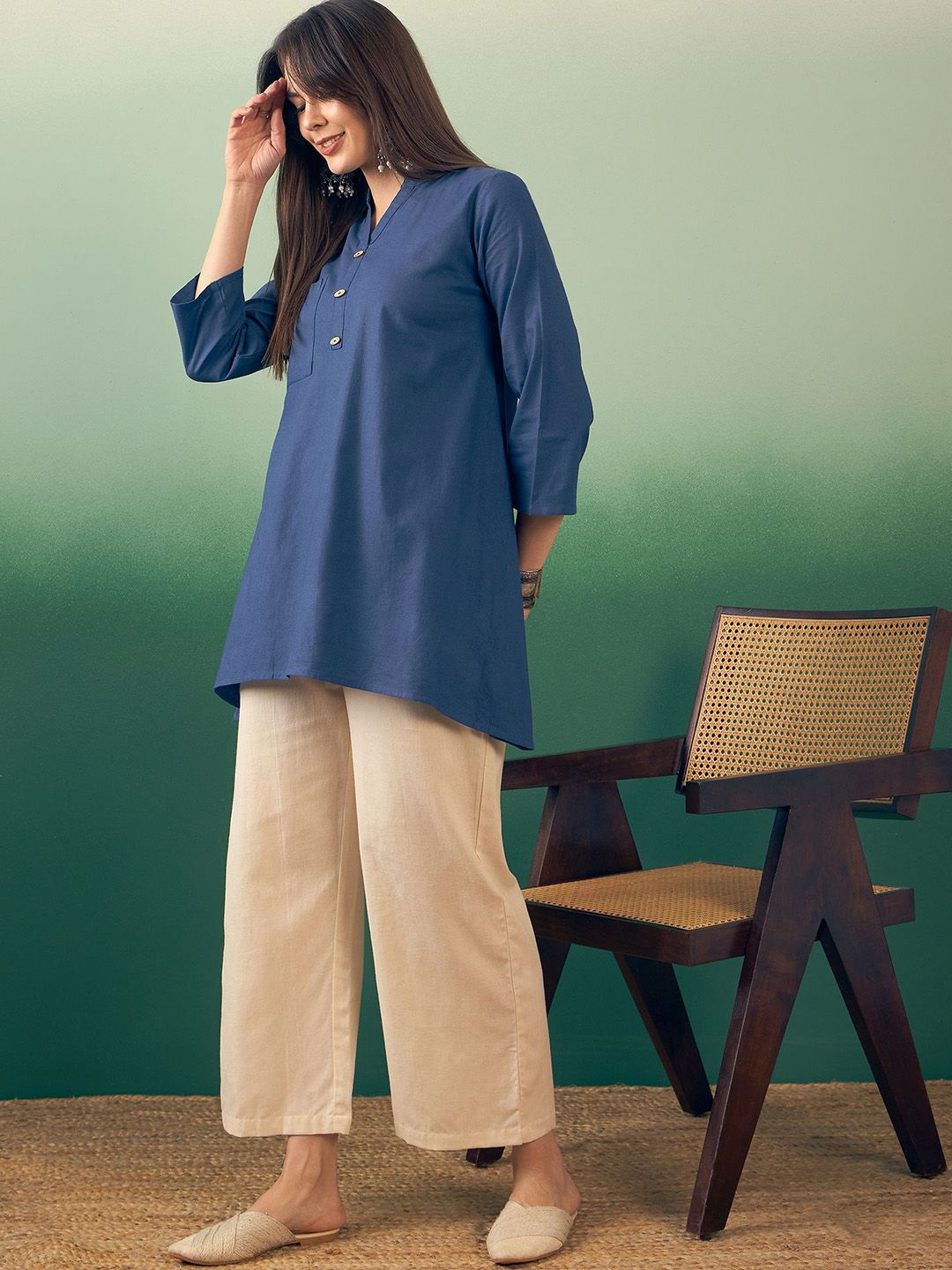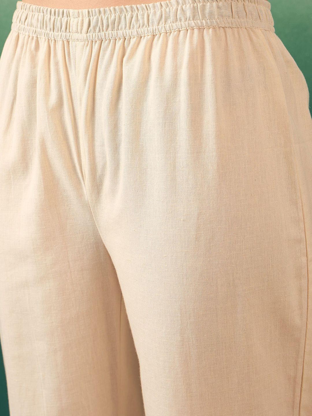 InWeave Mandarin Collar Pure Cotton A-Line Kurta With Trousers