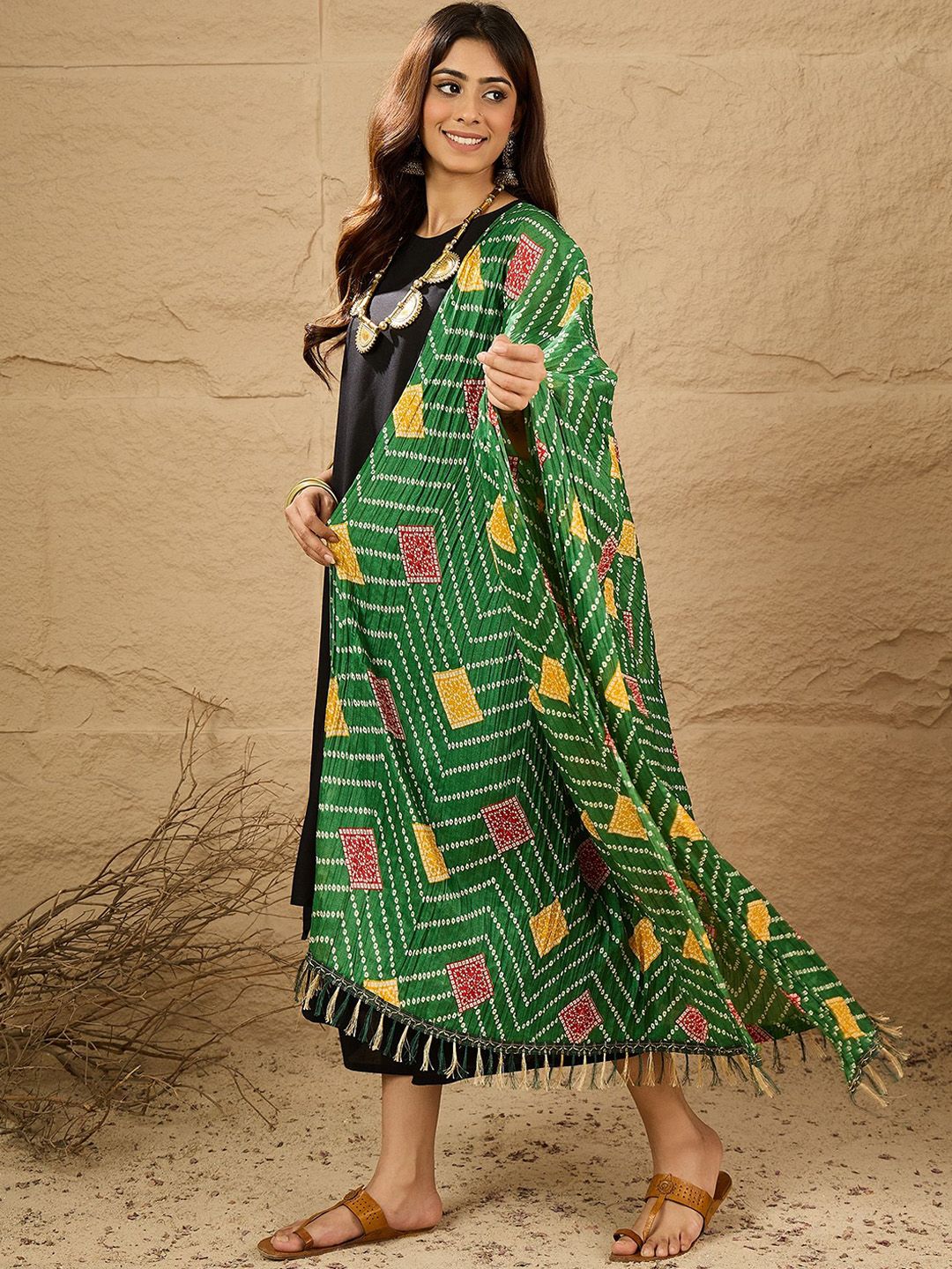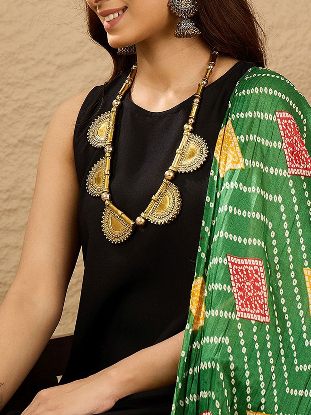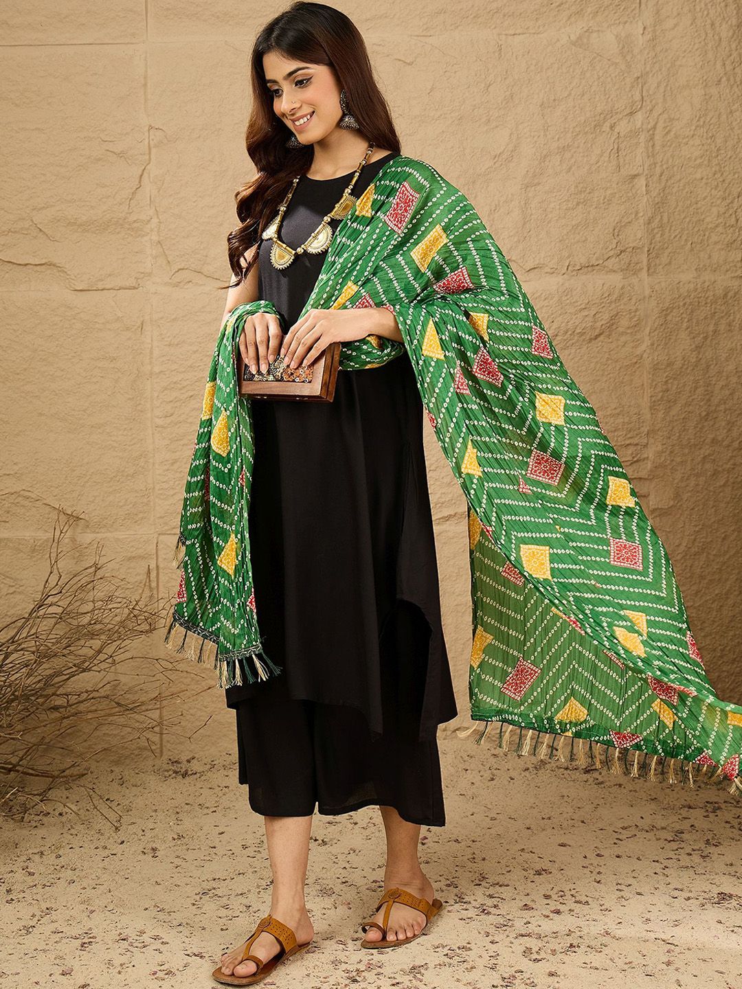 InWeave Round Neck A-Line Kurta With Palazzos & Dupatta