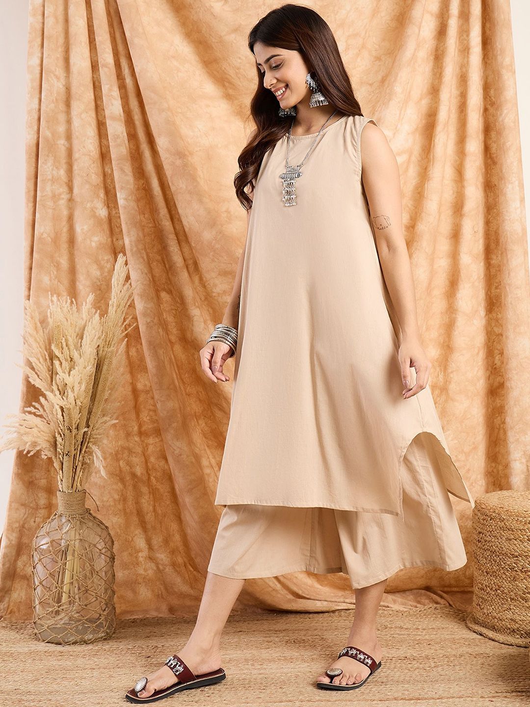 InWeave Round Neck Pure Cotton A-Line Kurta With Palazzos