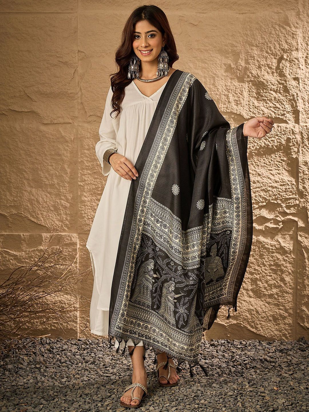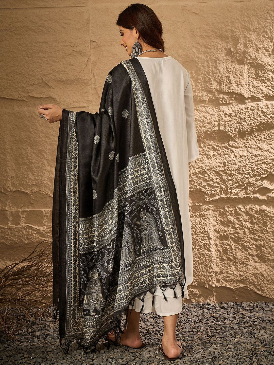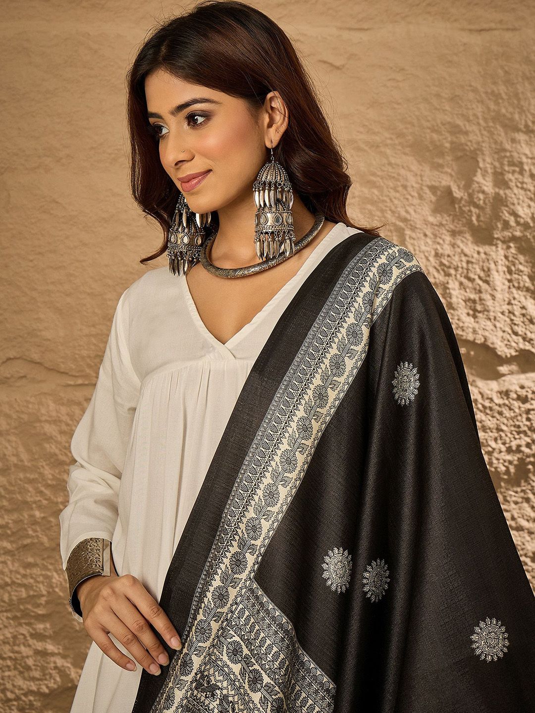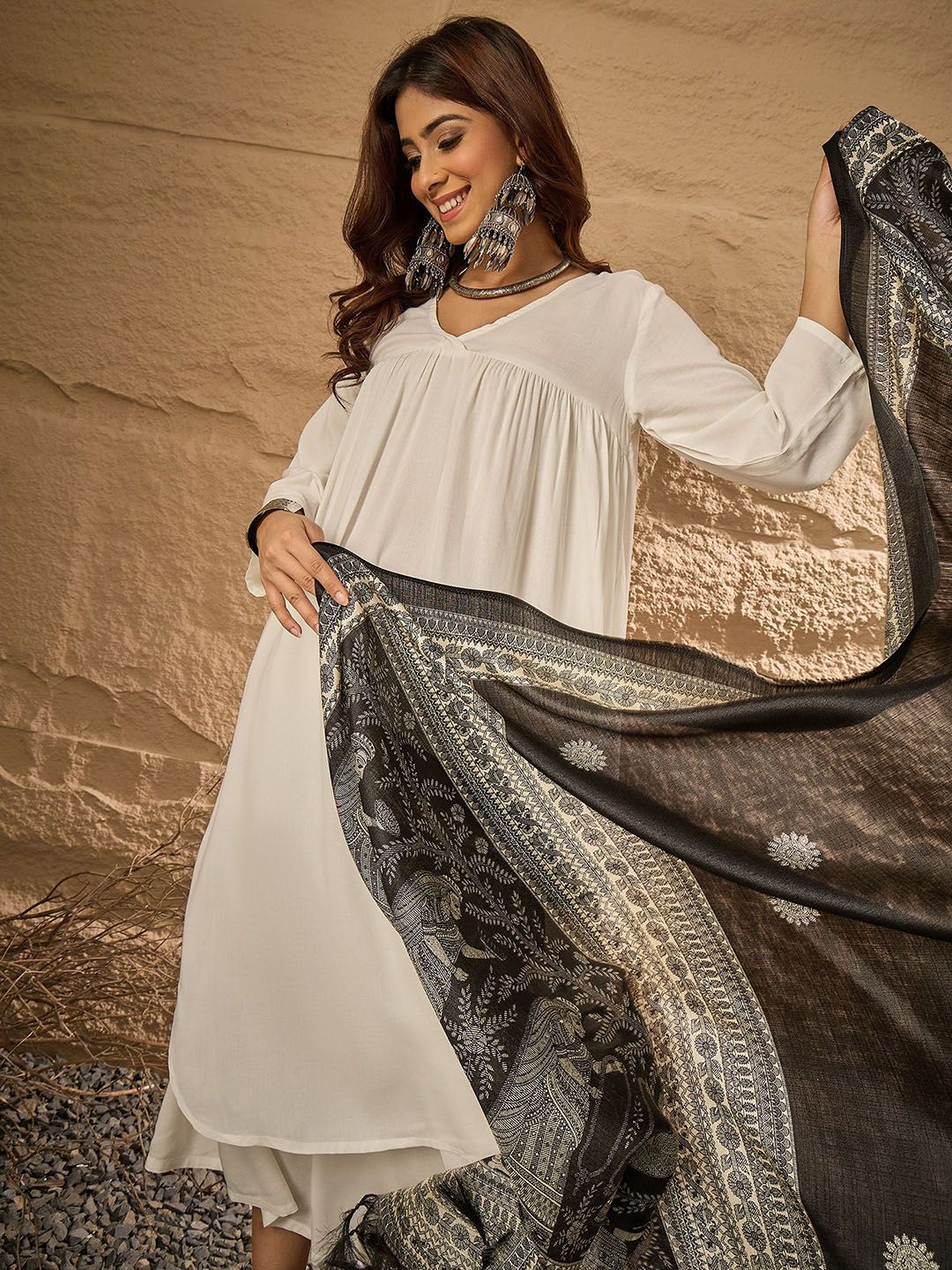 InWeave V Neck A Line Kurta With Palazzos & Dupatta