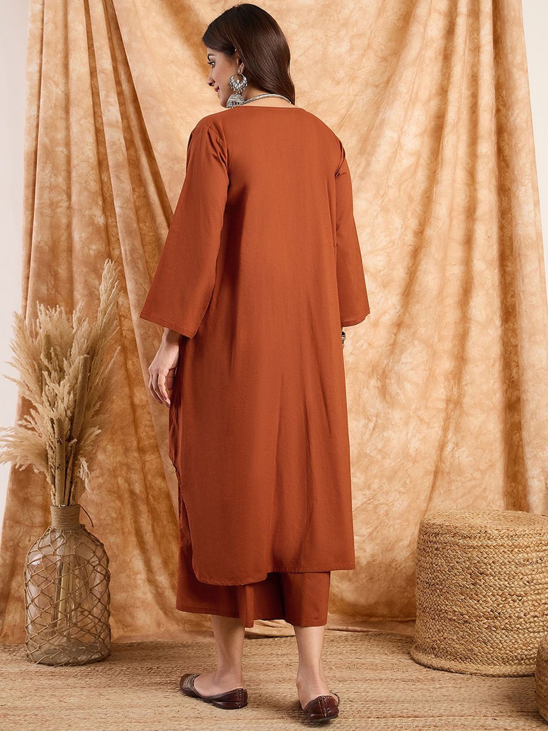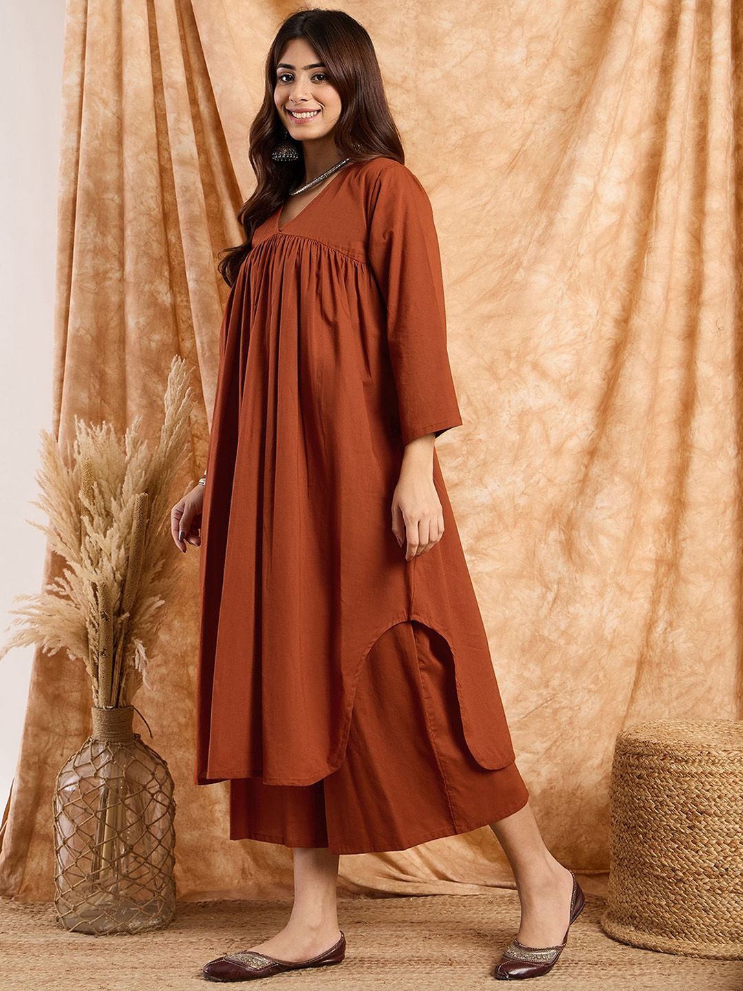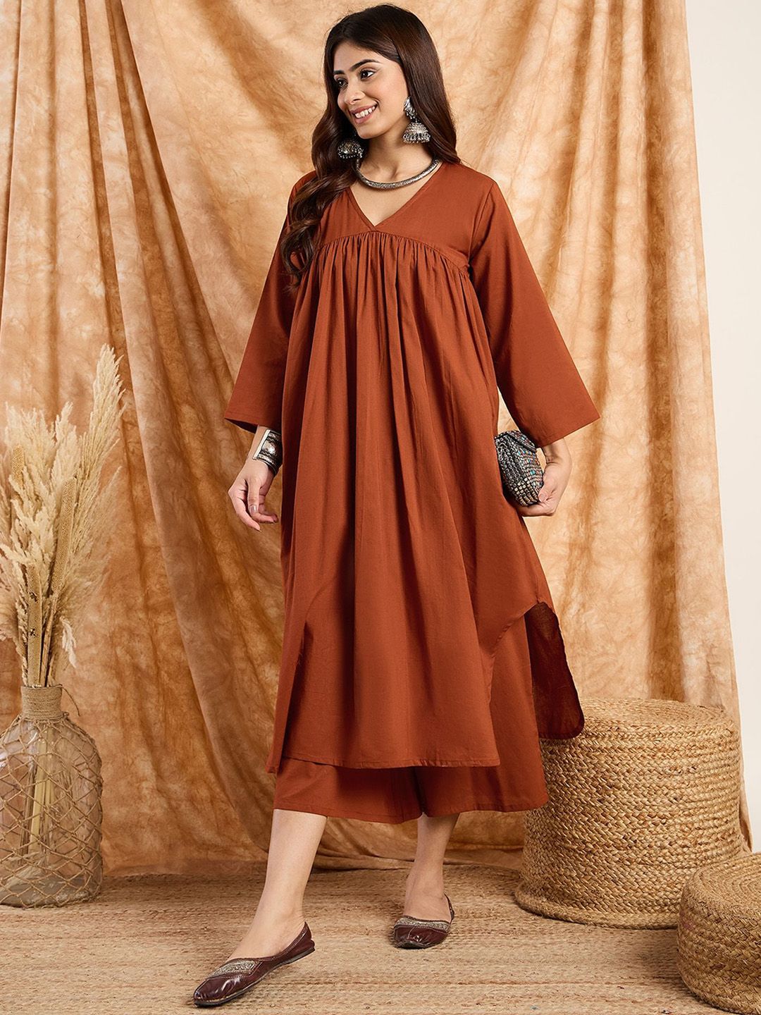 InWeave V-neck Pure Cotton A-Line Kurta with Trousers