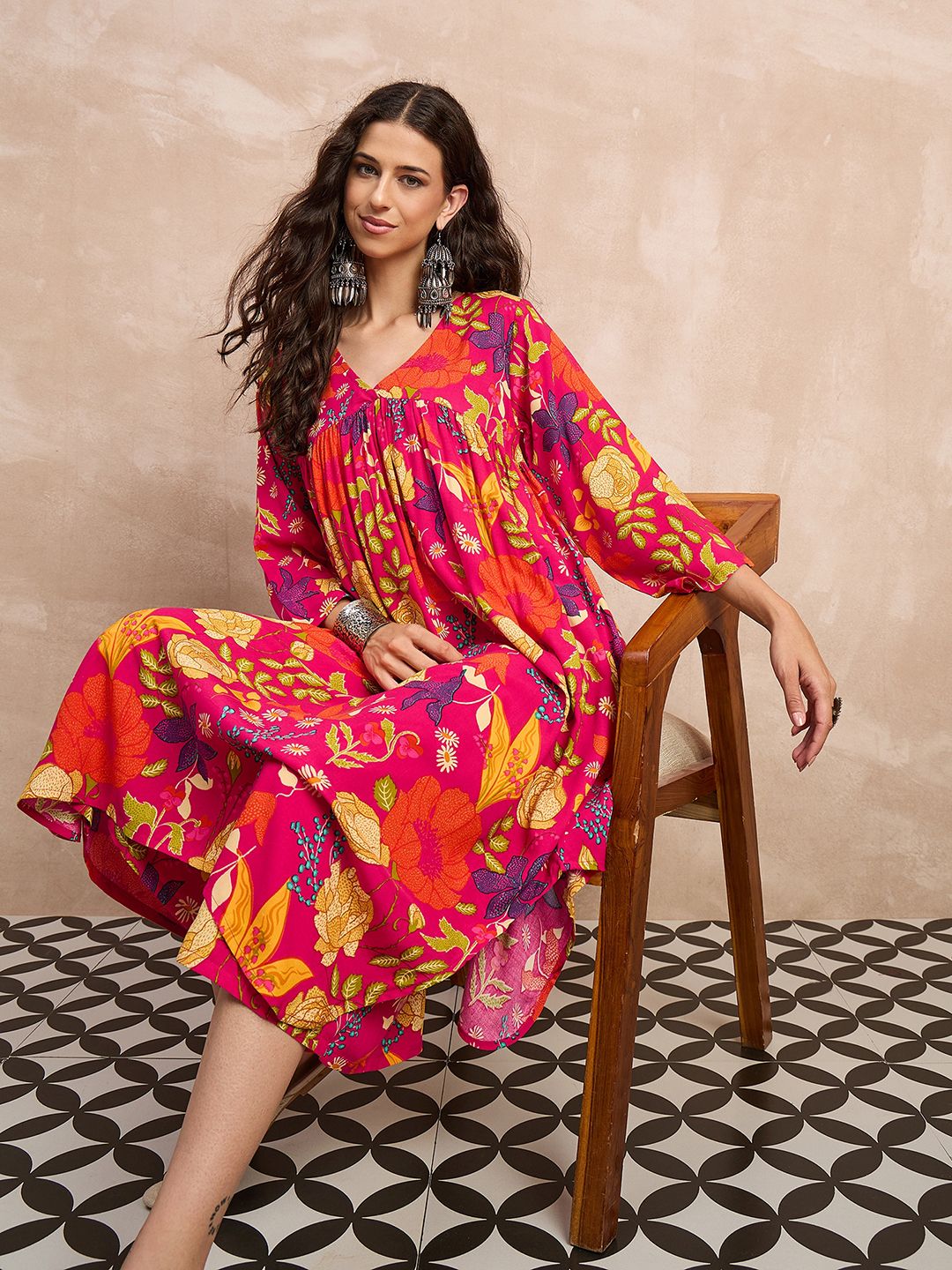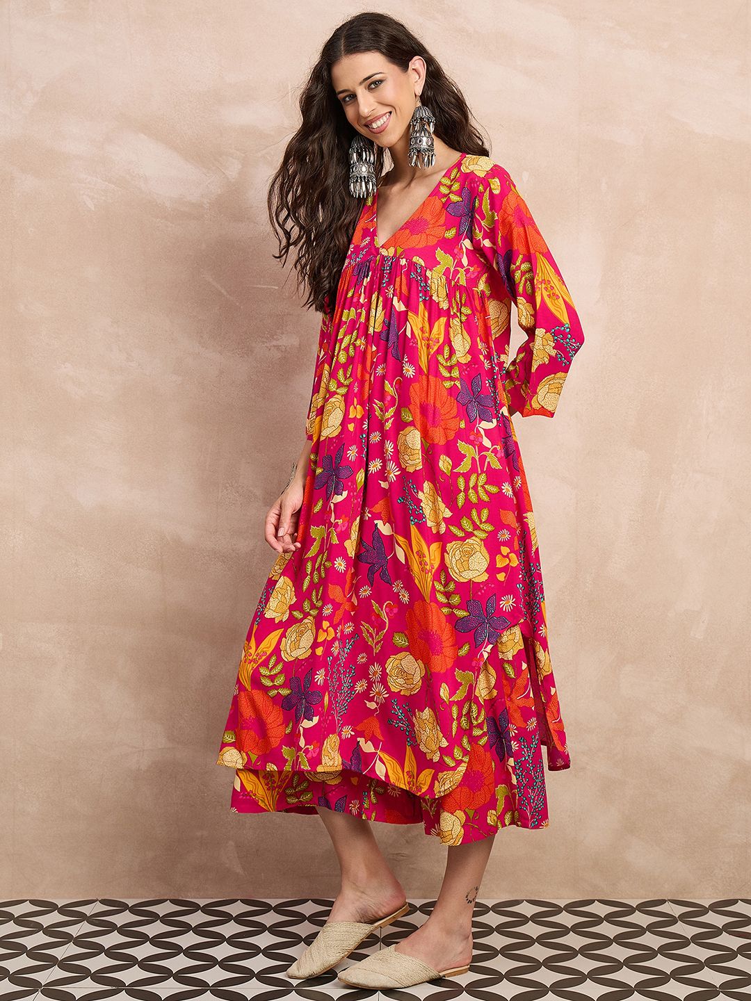 InWeave Women Floral Print Empire A-Line Kurta with Palazzo