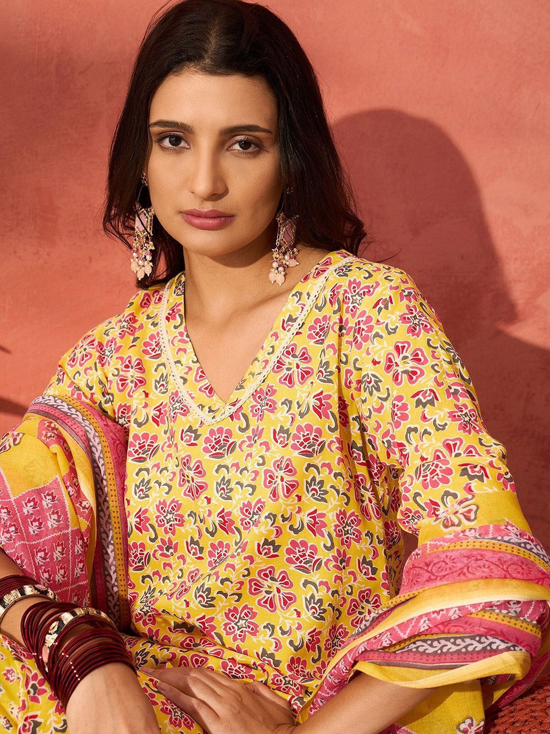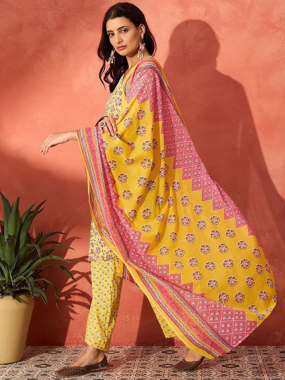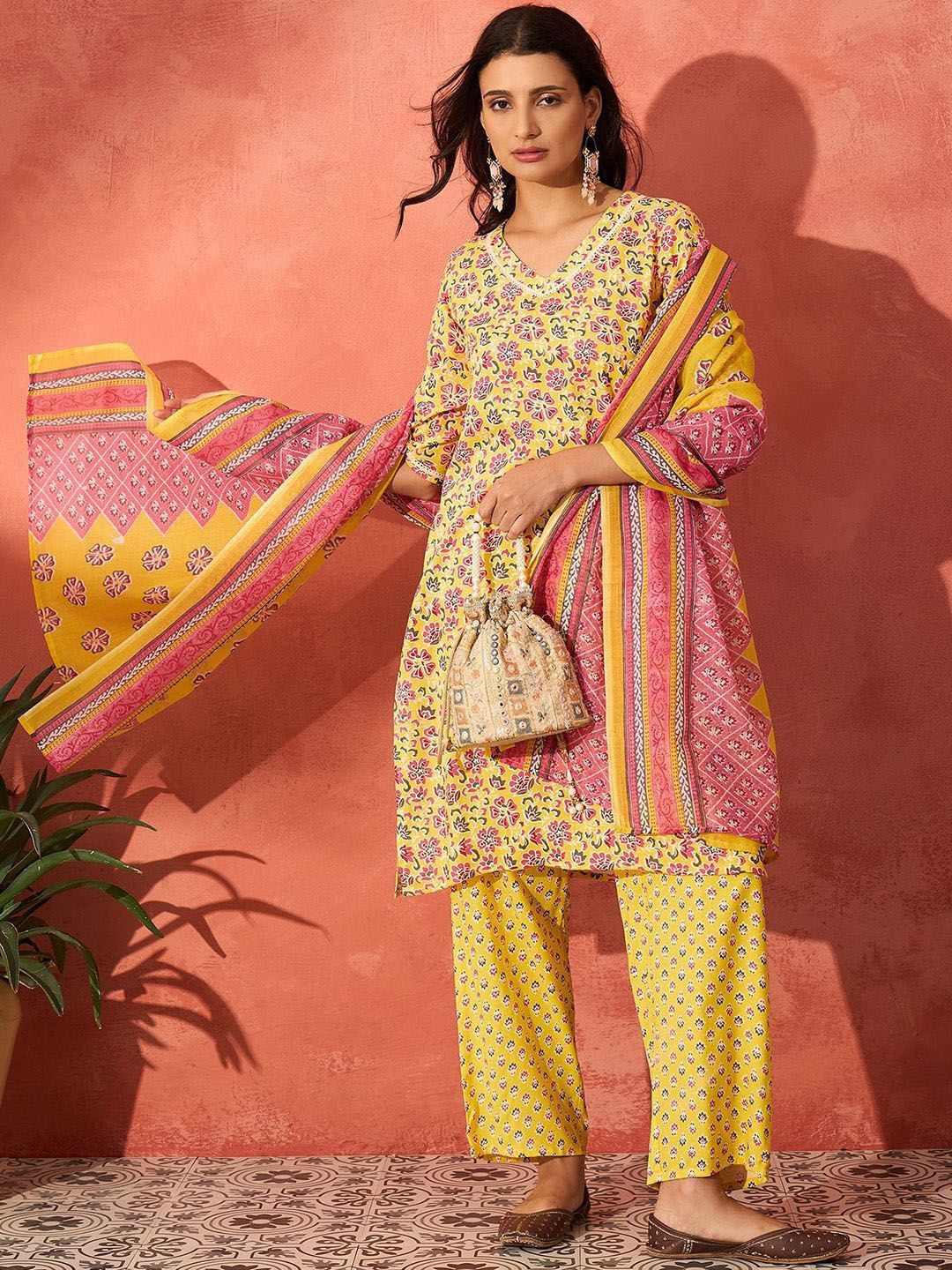 InWeave Women Floral Printed Kurta with Palazzo & Dupatta