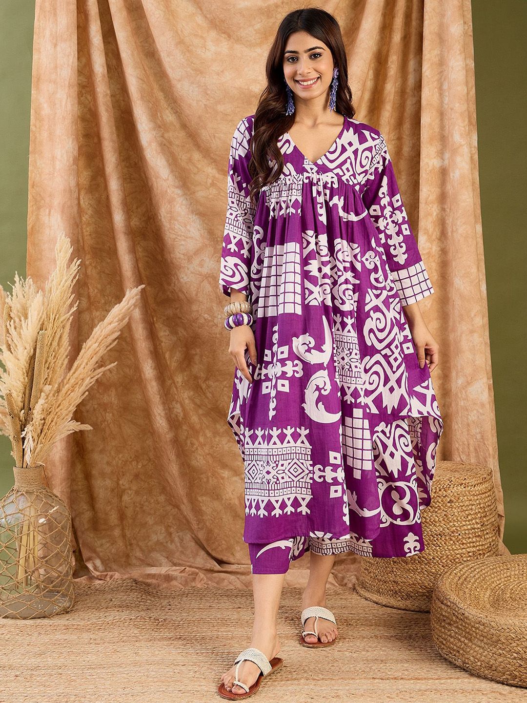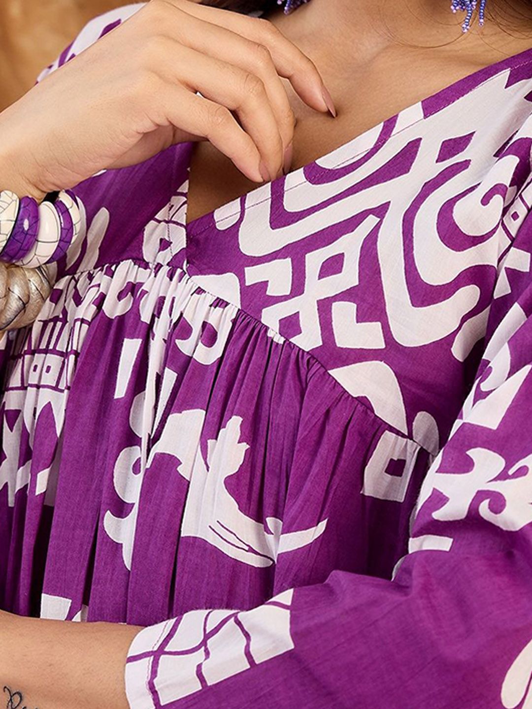 InWeave Women Printed Regular Pure Cotton Empire Kurta with Palazzos