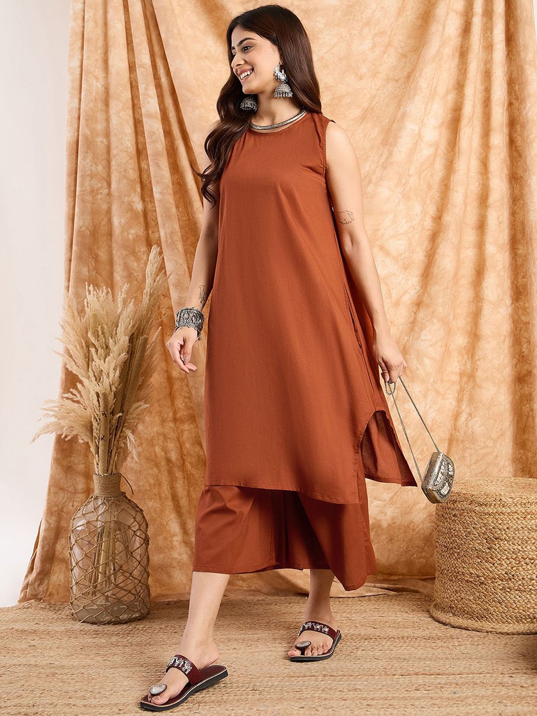InWeave Women Regular Pure Cotton Kurta with Palazzos