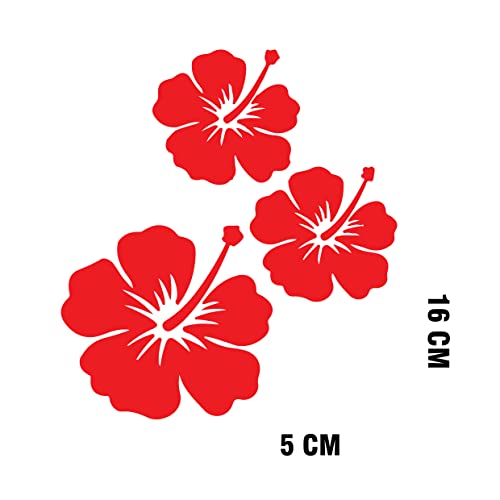 ISEE 360® Hibiscus Flowers Car Stickers for Car Truck Bike Window Glass Side Mirror Door Vinyl Decals L X H 16 cm X 5 cm (Red)