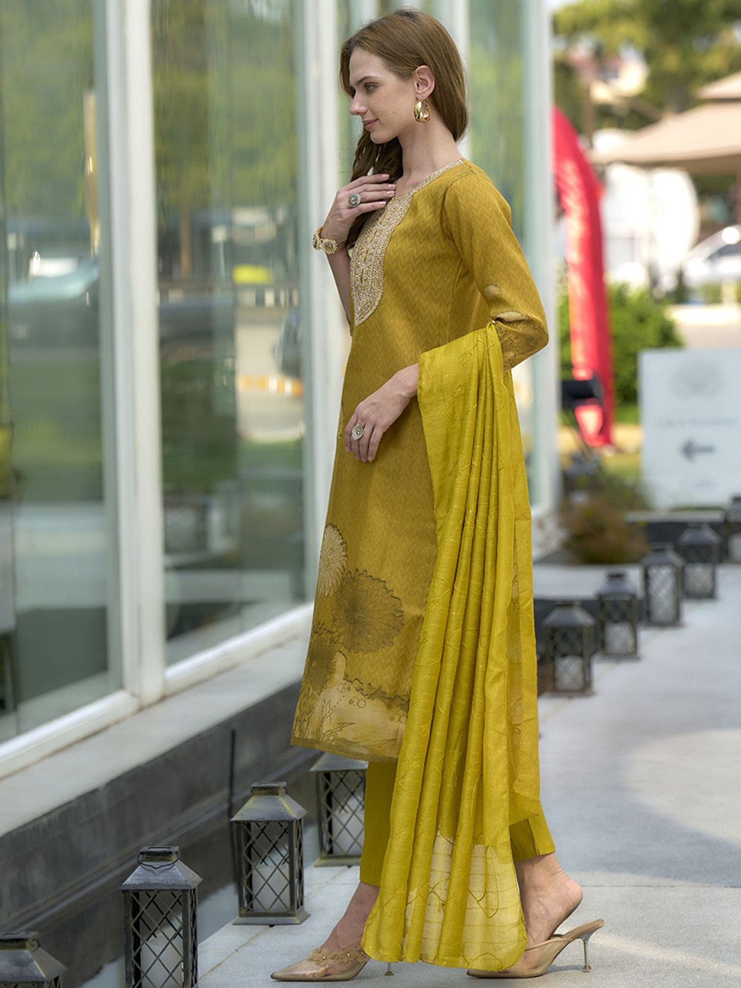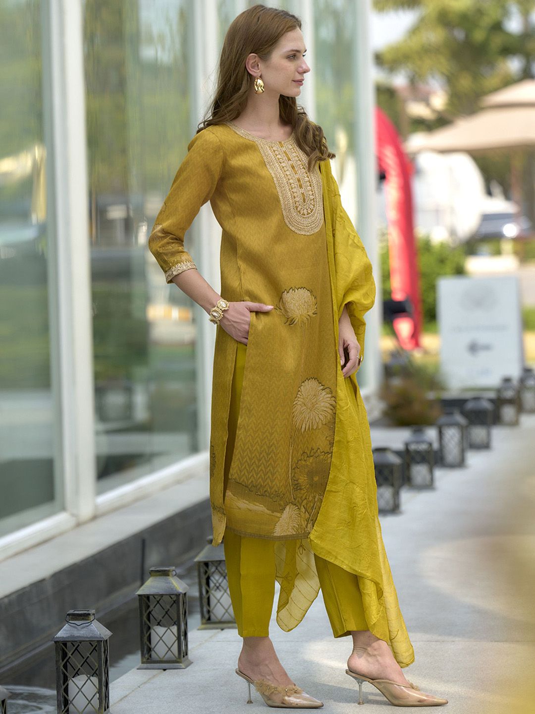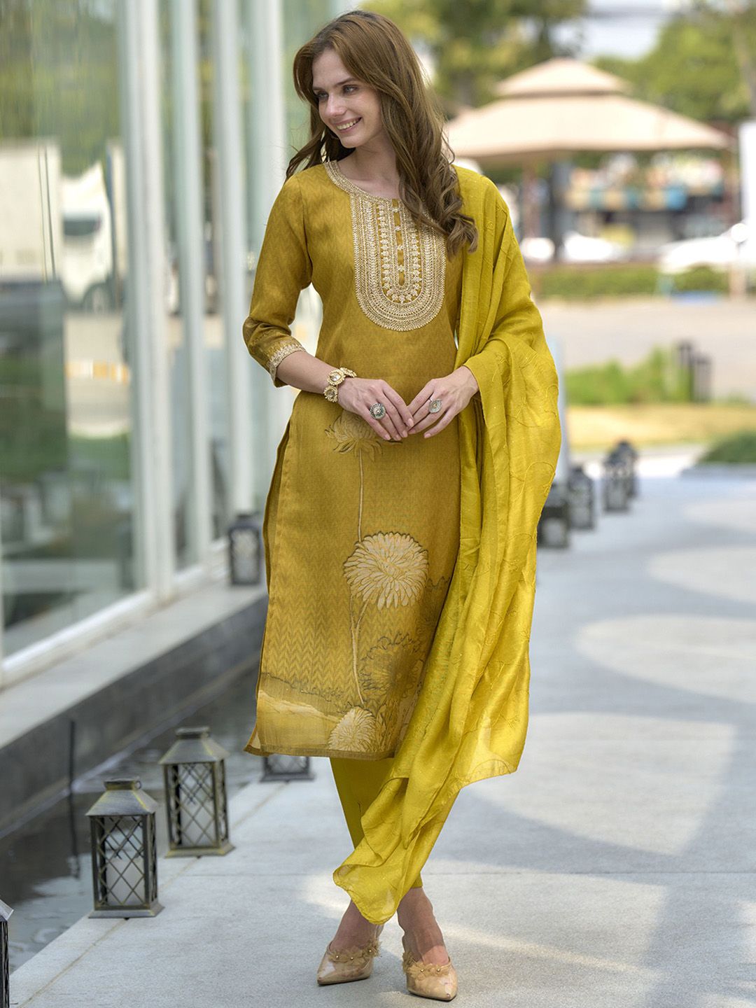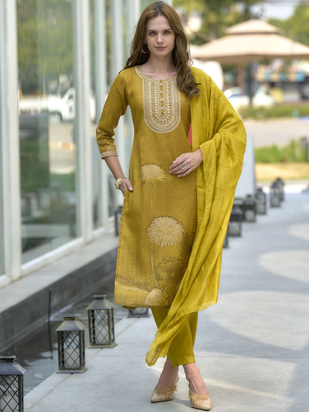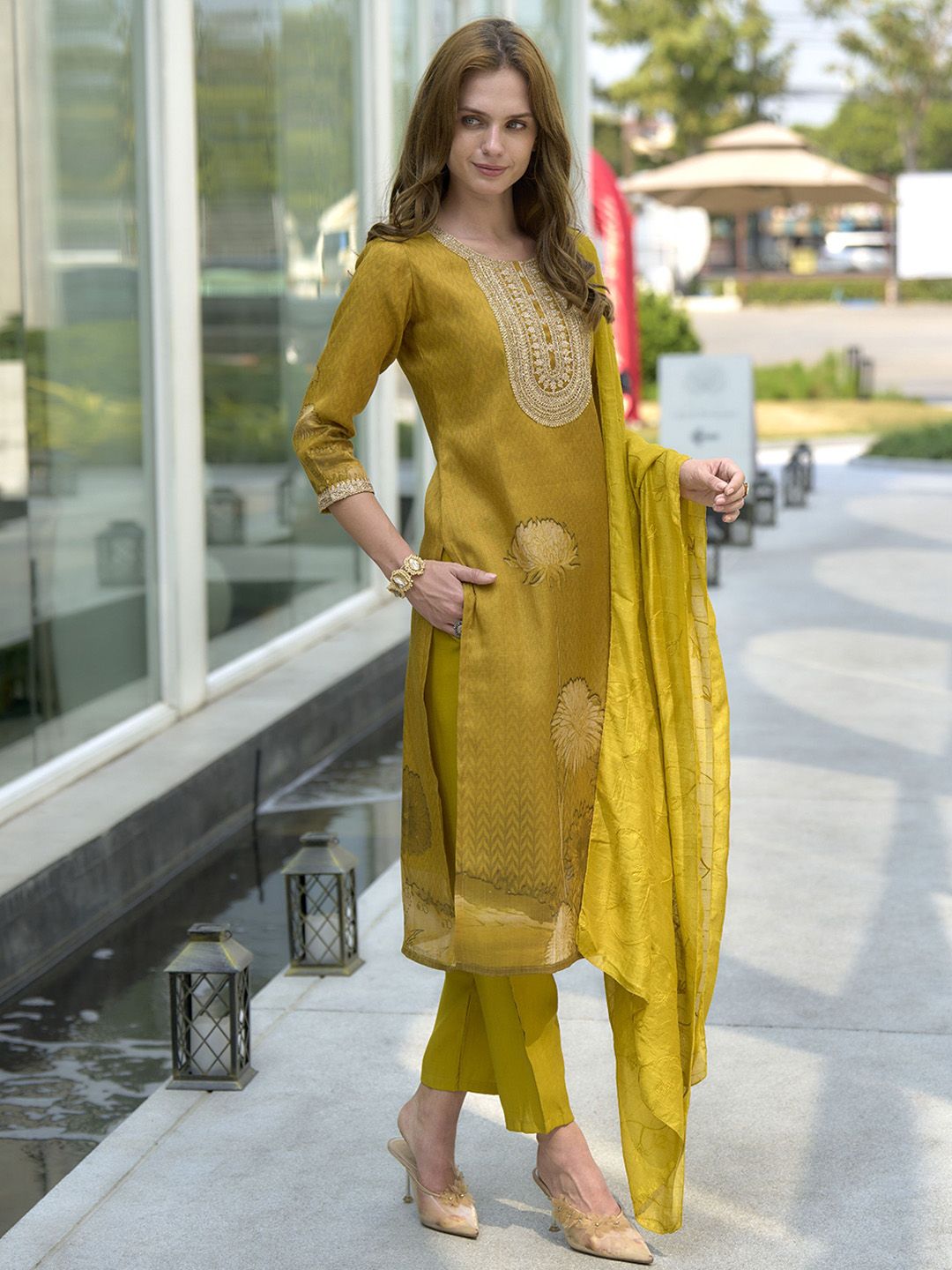 Ishin Women Embroidered Kurta with Trousers & Dupatta