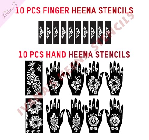 ???? Henna Tattoo Stencils Combo Kit: Package Included Set of 32 Pcs, ( 10 Pcs Mehandi Hand Stencils Sheets 7 inch x 3.5 inch , 10 Pcs PVC Reusable Stencils 2.5 inch x 2.5 Inch for Palm, Arm, Etc), (2 Pcs Wrist, ARM, Hand Border Stencils, Size 7 inch x 1.5 inch , 10 Pcs Finger Ring Stencils ), Self-Adhesive Premium Hand Heena Stencils. ???? Premium Quality: These Ivana's Henna Tattoo Templates is Made from High-Grade PVC, Non-Toxic and Eco-Friendly, Waterproof. ???? Fantastic Gifts : Beautiful Collection of Floral Designs, Unique and Strong Adhesive Tattoo Stencils for Women, Girls, Kids, Teens, and Adults. Almost unlimited creative combinations and options to meet your every need. ???? Fun Experience: Our Ivana's Henna Tattoo Stencils can Help you to Make Perfect Temporary Tattoo within a few minutes. Perfect for party favors, any events such as wedding, birthday party, concert, the Pool, The Beach, Parties, Festivals, Concerts, henna day Party, etc. ???? Easy to Use : The Tattoo Body art Stencils are Adhesive and Removable, just find the one you like and stick it on your body, If the size does not match your hand size, you can cut the part to be used and stick it to the place you want to use.and fill in the hollow, and then tear off it, done,Great for beginners&family,add to your cart now!