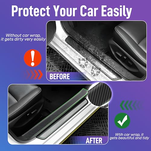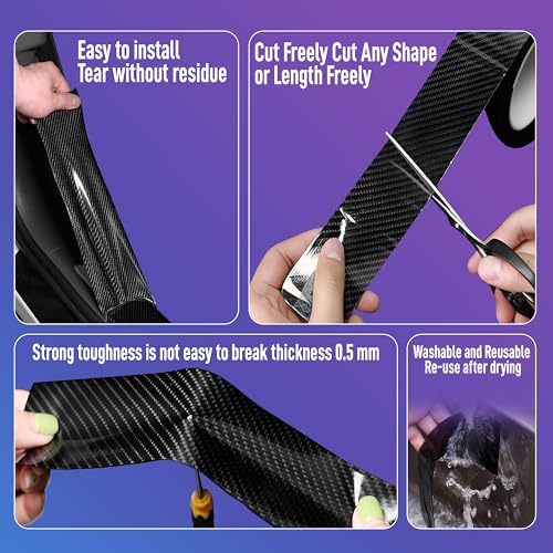 Excellent design: Carbon fibre car door sill sticker size: 5 cm x 10 m. Material: Made from high-quality carbon fibre. Colour: High-gloss black. The length of the carbon fibre tape can be cut as required. It is very easy to use Perfect car protection: The carbon fibre material is waterproof, provides UV protection, protects the paint and can also prevent your car from being scratched. It can cover small scratches, cracks or other irregularities. Restyle your car. Waterproof and anti-scratch: The very durable carbon foil with a UV protective layer is resistant to water, dirt and grease and easy to clean. Note: Ensure the surface is dry and clean before use. Do not allow any contact with water for 48 hours. Multifunctional sticker: Car door sill plates, carbon fibre sticker made of high-quality carbon fibre material, firm and wear-resistant, durable and long-lasting. Textured with a carbon design and provides a unique and elegant look when it sticks to your car. It can be adjusted to fit most cars, saloons, SUVs, minivans, car boots and pick-ups. High-quality material: Black car film, waterproof and scratch-resistant, very durable, with a UV protection layer, resistant to water, dirt and grease and easy to clean.