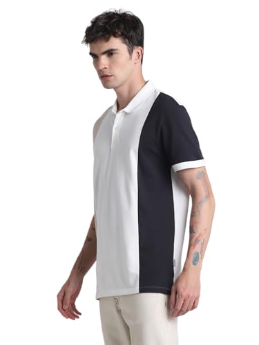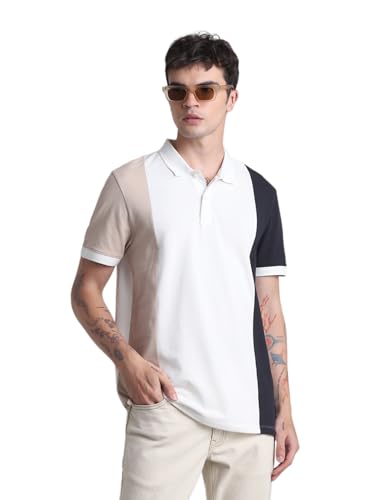 JACK & JONES Colourblocked Polo Collar Slim Fit Pure Cotton T-Shirt