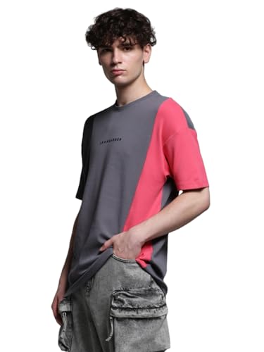 JACK & JONES Men Colourblocked Round Neck Cotton Oversized T-Shirt