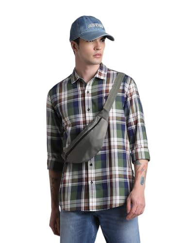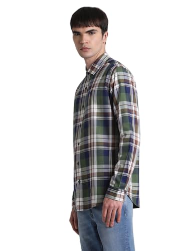 Jack & Jones Men Cotton Regular Tartan Checked Spread Collar Casual Shirt