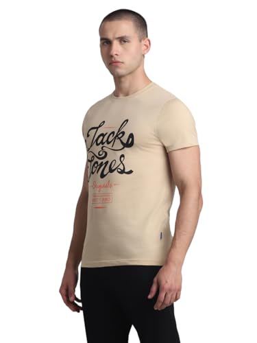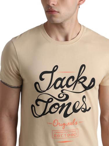 JACK & JONES Men's Cotton Letter Print Slim Fit T-Shirt