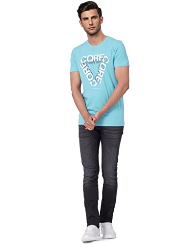 JACK & JONES Men's Cotton Placement Print Slim Fit Round Neck T-Shirt